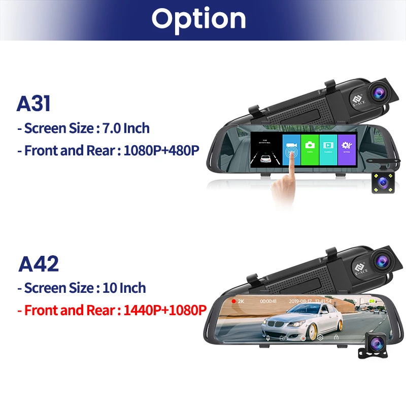 1:1 дизайн разделенного экрана для переключения записи спереди и заднего вида, большой экран и четко и ersily для проверки заднего вида. Вы можете переключаться, проводя пальцем влево или вправо. Он содержит 3 вида: вид спереди, вид сзади, вид спереди и сзади.