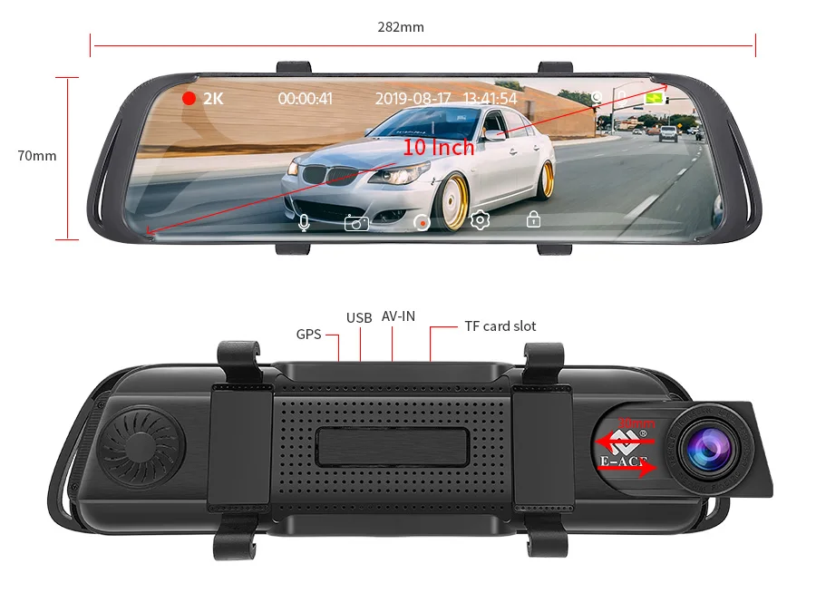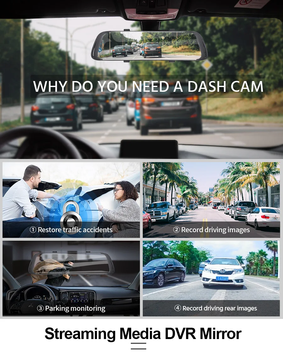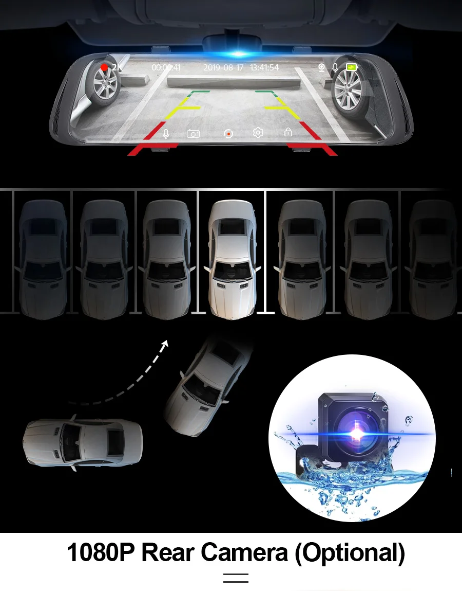 Видеорегистратор оснащен этой передовой технологией потоковой передачи данных, делает угол заднего вида вождения более широким, это тройной широкий угол обзора, затем традиционное зеркало. Видеорегистратор использует HD, чтобы предоставить вам безупречные изображения в дождь, туман, снег, или даже при слабом освещении.
