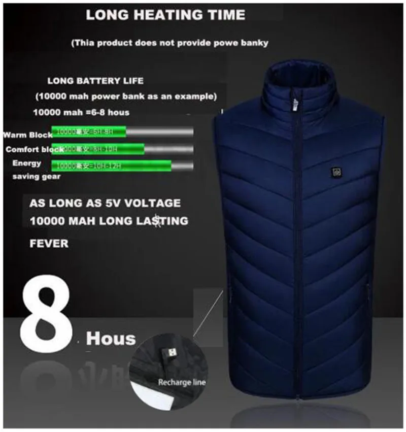 Посылка включает в себя:1 х жилет с подогревом(Мобильная мощность не входит в комплект)