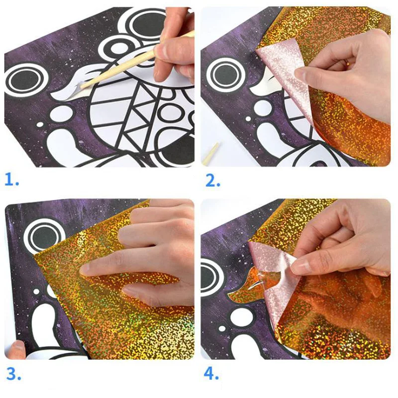 DIY Magic Color Scratch Painting Stencil for Drawing Art Sticker Paper Craft Set Kids Creative Educational Toys for Children