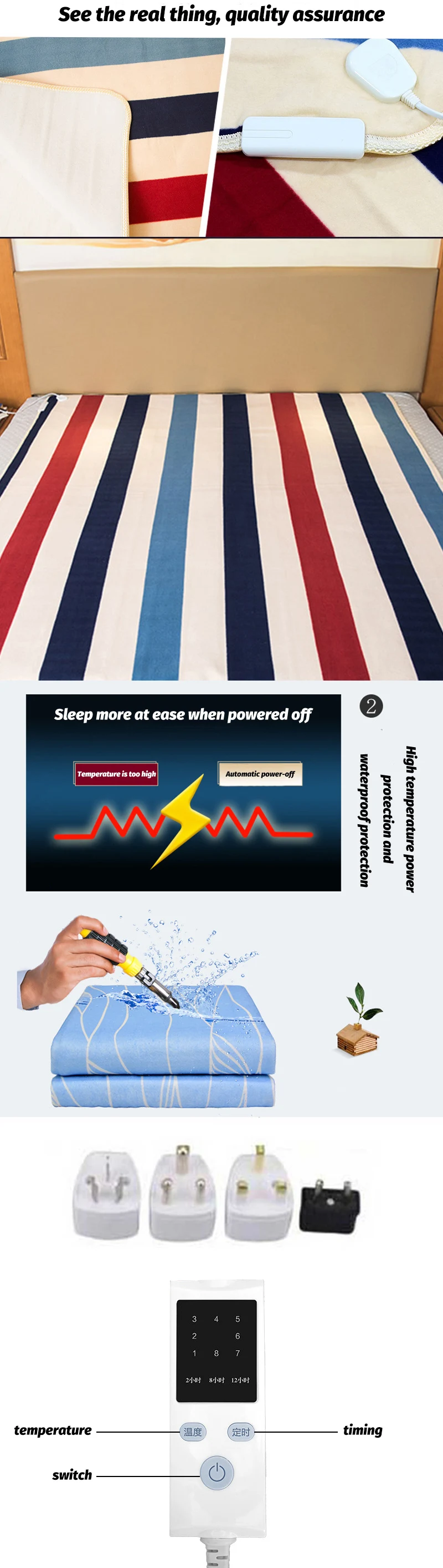 Одеяло плюшевое двойное нагревательное одеяло безопасное электрическое одеяло утолщенное зимнее одиночное электрическое нагревательное одеяло Нагреватель тела Размер продукта: одиночный лист 70x150 см, двойной лист 150x120 см, три листа 150x180 см (150x180 см-это двойной переключатель управления, левая и правая стороны можно контролировать отдельно при различных температурах) Материал: плюш Характеристики продукта: безопасный, удобный и мягкий Тип переключателя: Тип теплового контроля Напряжение продукта: 220 В (50 Гц-60 Гц) Клиенты из США, Мексики, Канады, Колумбии, Японии, этот каталог недоступен в вашей стране/регионе, вам необходимо приобрести преобразователь напряжения, потому что напряжение в вашей стране/регионе составляет 110 В. Если вы хотите потратить больше денег на конвертер, у нас также есть одеяла 110 В в вашей стране, которые могут быть использованы в каталоге вашей страны. Измеряется вручную, размер может иметь погрешность в 2-4 см, надеюсь, вы понимаете Обратите внимание: * Нельзя стирать или подвергать химической чистке, но можно аккуратно мыть вручную, обратите внимание, что переключатель не может промокать. * Нельзя использовать, если слишком много влаги Если вы живете в Европе с европейской стандартной вилкой. Мы вышлем вам европейские стандартные вилки бесплатно. Если Вашей стране нужны американские стандартные вилки, британские стандартные вилки или австралийские стандартные вилки, тогда мы отправим вам соответствующие стандартные вилки бесплатно.