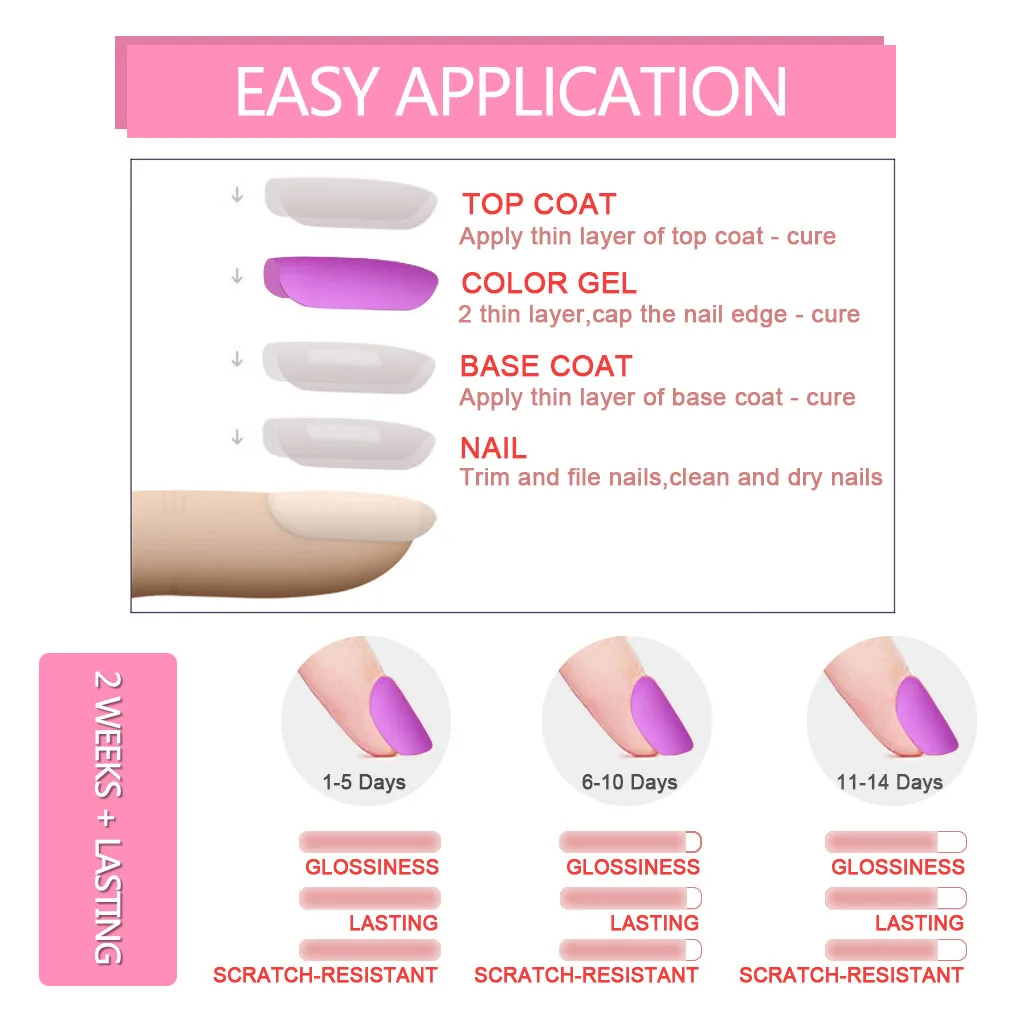 Шаг 3: нанесите цветной лак в тонком приложении и вылечите под УФ лампой в течение 2 минут, светодиодный светильник в течение 30-60 секунд