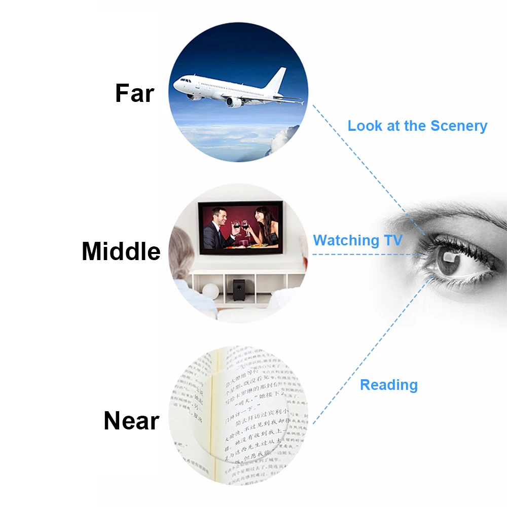 Асимптотические многофокальные очки являются верхней оптической областью линзы, используемой для того, чтобы смотреть далеко, а нижняя оптическая область, используемая для просмотра рядом. Степень середины постепенно изменяется, что привык смотреть на промежуточную область. Большинство людей носят прогрессивные многофокальные очки нужно около недели адаптации, но период адаптации варьируется от человека к человеку, ходить медленнее, когда у вас головокружение. При спуске по ступенькам, пожалуйста, опустите очки и используйте верхнюю область. Вы будете чувствовать себя в безопасности и комфортно.