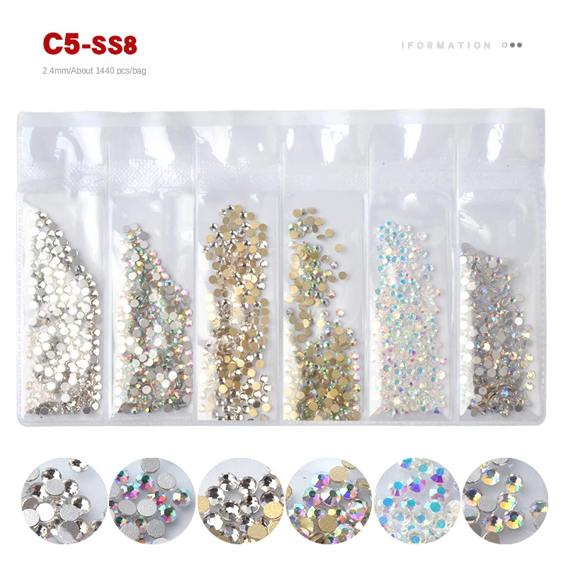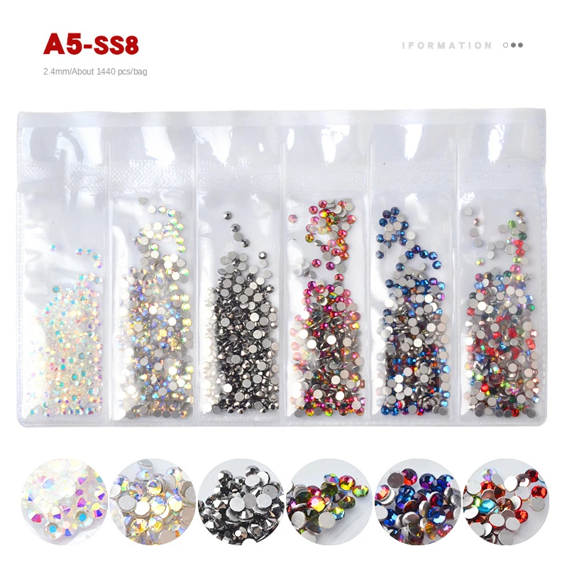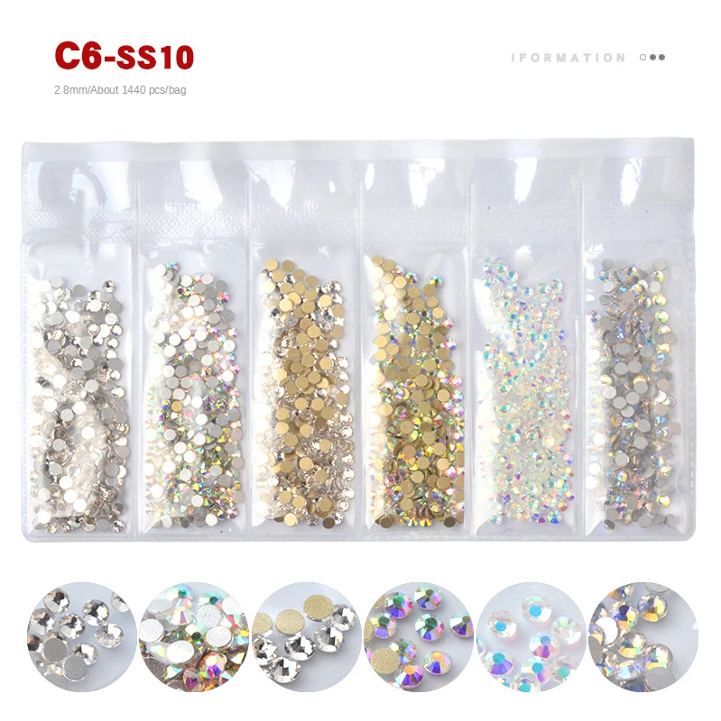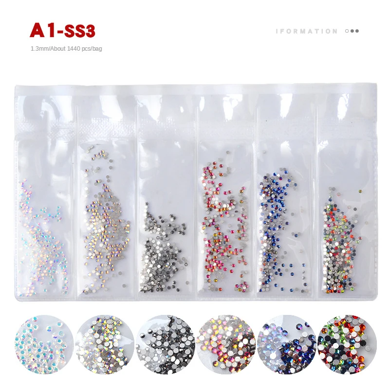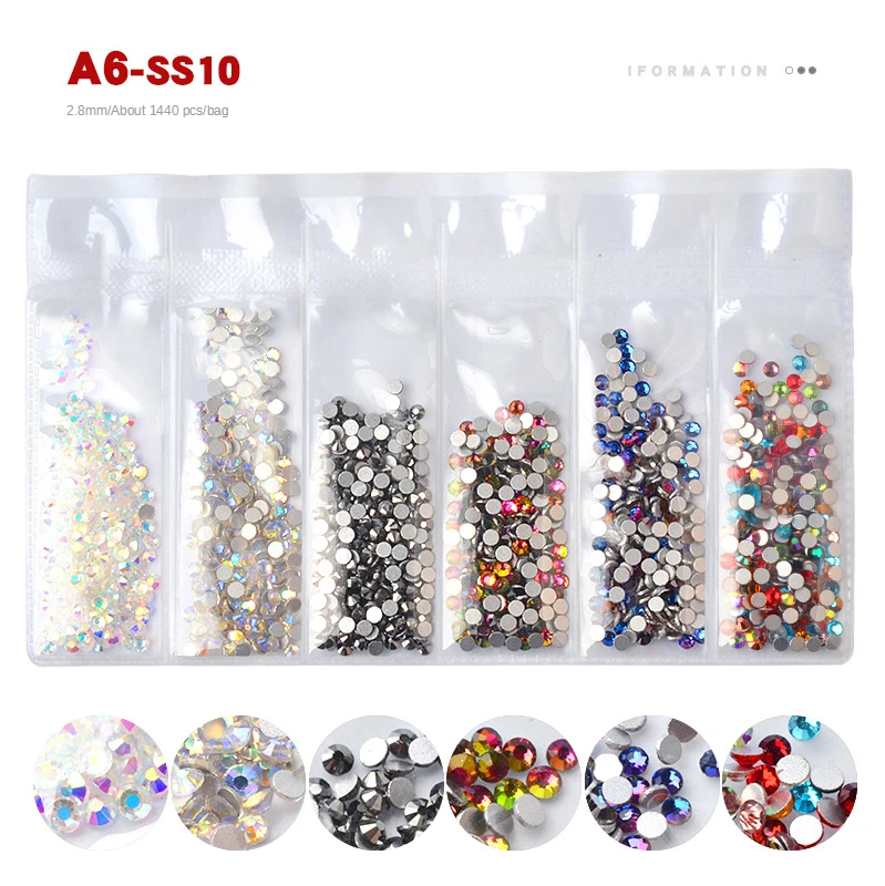 1 Набор стразы набор Flatback Стеклянные стразы для ногтей 6 размеров смешанные цвета AB Хрустальные Стразы 3D очаровательные драгоценные камни DIY украшения для дизайна ногтей