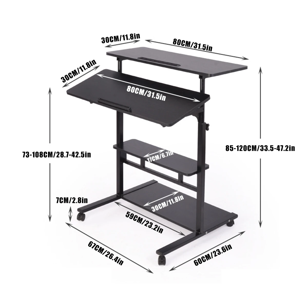 Регулируемая высота: 73-108 см/28,7-42,5 дюйма