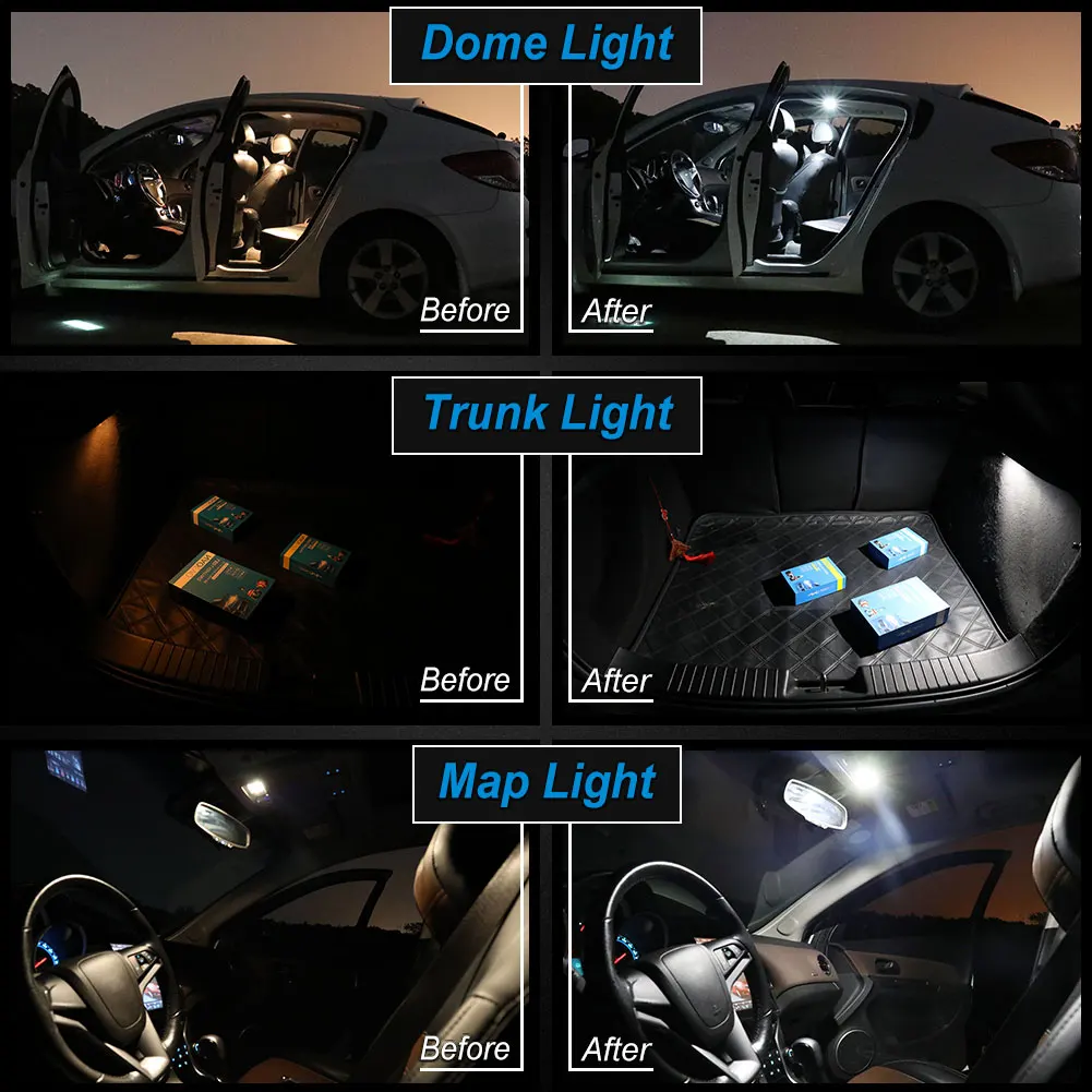 Подсветка номерного знака, подсветка салона, Купольные огни, подсветка карты, габаритные огни, задние фонари и т. Д.