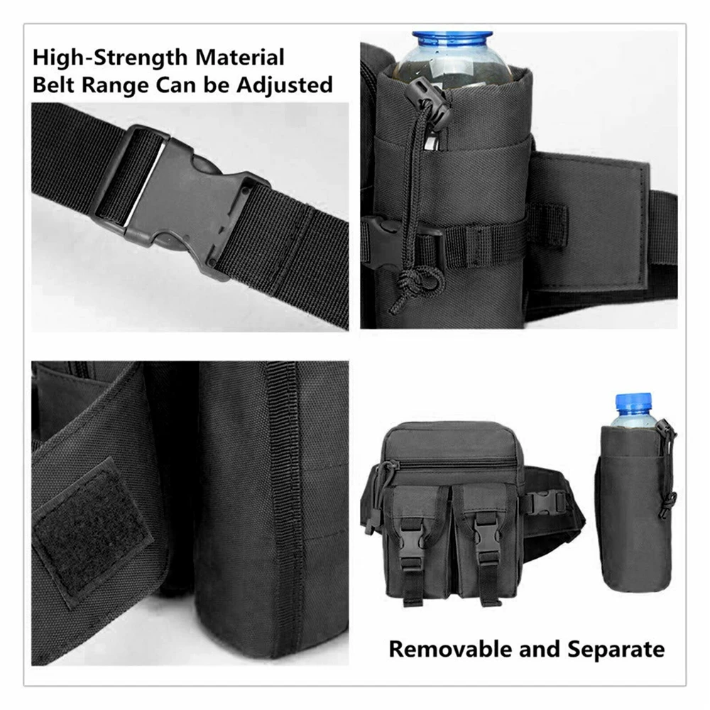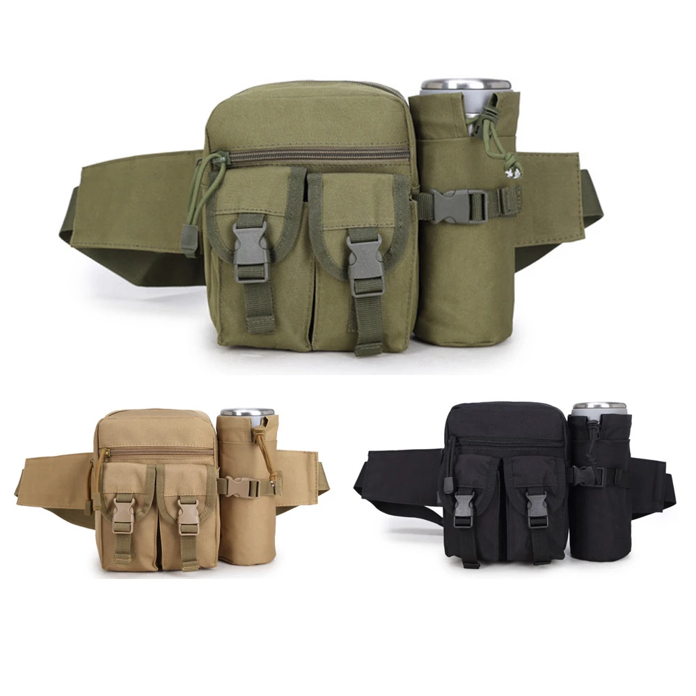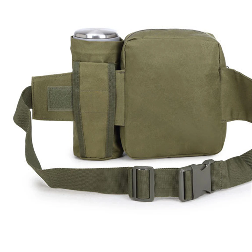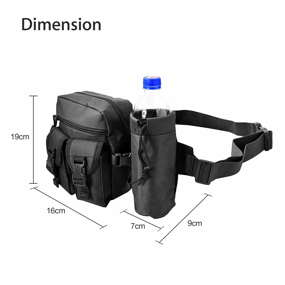 Тип: поясные сумки Материал: нейлон Оксфорд Цвет: черный, армейский зеленый, хаки Стиль: спортивный Размер (ДхШхВ): прибл. 16x9x19 см/6,3x3,5 x7.5 Сумка для бутылки с водой (диаметр): прибл. 7 см/2,8 дюйма Посылка в комплекте: 1 поясная упаковка Характеристики продукта: Емкость: малый размер, большая емкость, может держать мобильные телефоны, сигареты, зажигалки, фонари, ключи, кошельки, бумажные полотенца и другие предметы первой необходимости. Он имеет много карманов и держатель для бутылки, чтобы освободить ваши руки как можно больше. Функции: вы можете не только использовать его в качестве поясной сумки, но и носить его на одном плече. Не легко впитывает пыль, пятна, легко моется. Материал: изготовлен из нейлона, прочный, прочный и износостойкий. Регулируемый: диапазон ремешка может быть свободно отрегулирован, что удобно и естественно. Применение: подходит для большинства мероприятий на открытом воздухе, таких как бег, кемпинг, путешествия, туризм, Велоспорт и многое другое. Он также подходит для всех видов повседневной одежды.