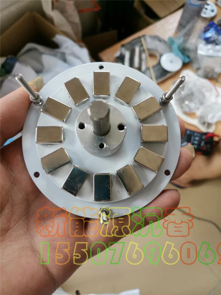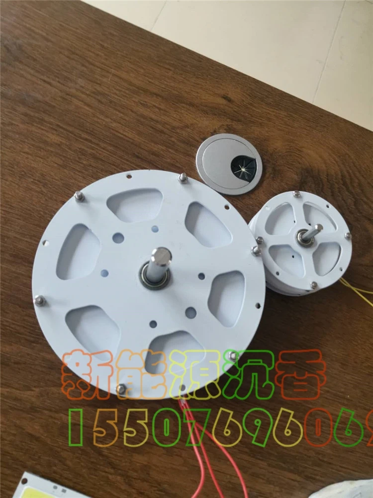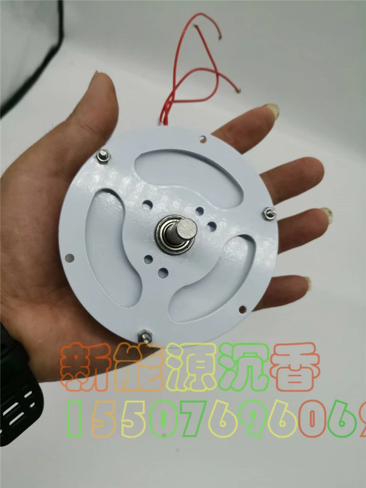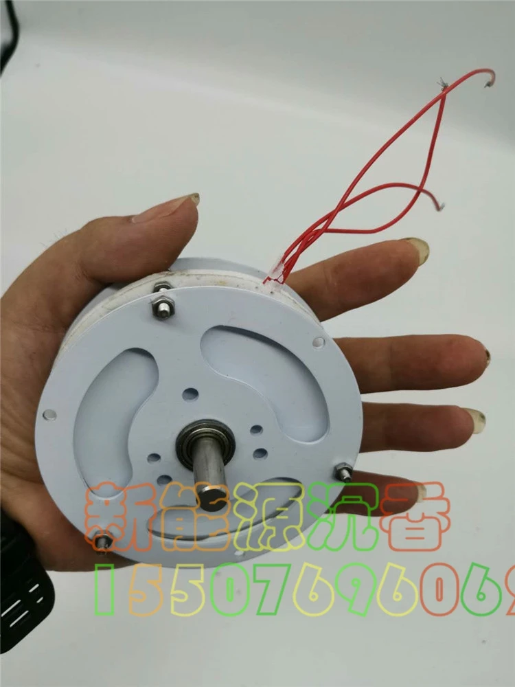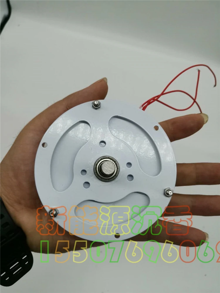 Трехфазный Бескаркасный редкоземельный генератор с постоянным магнитом, выходной Трехфазный переменный ток (ac) и выпрямитель постоянного тока, внешний диаметр генератора: 90 мм, толщина: 33 мм, выходной вал изготовлен из вала из нержавеющей стали, диаметр оси: 8 мм, корпус ротора изготовлен из металла, Лак, который испечь ржавчину, прочный, статор использует белый эпоксидной смолы инкапсуляции, водонепроницаемый, пыль, внутренний тип ротора. Светильник не мешает. Высокая эффективность производства электроэнергии, Вес: около 530 г.