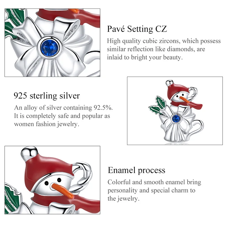 Материал: S925 + покрытая платина + паве установка CZ + + эмаль процесс Размеры: 1,3*1,1 см Описание: Как один из главных героев Рождества, маленький Снеговик спокойно пришел с подарками.