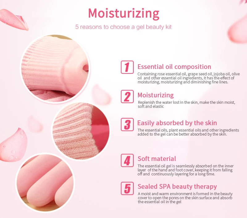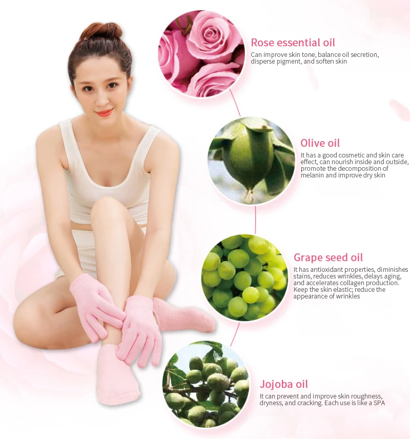 Гелевые перчатки с натуральными эфирными маслами: масло авокадо, масло канолы, масло виноградных косточек, масло жожоба, оливковое масло.