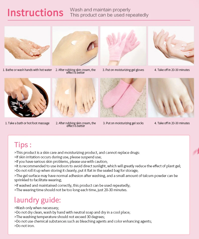 Носите Гелевые перчатки и нескользящие носки в течение 20-30 минут в день или носите перчатки на ночь.
