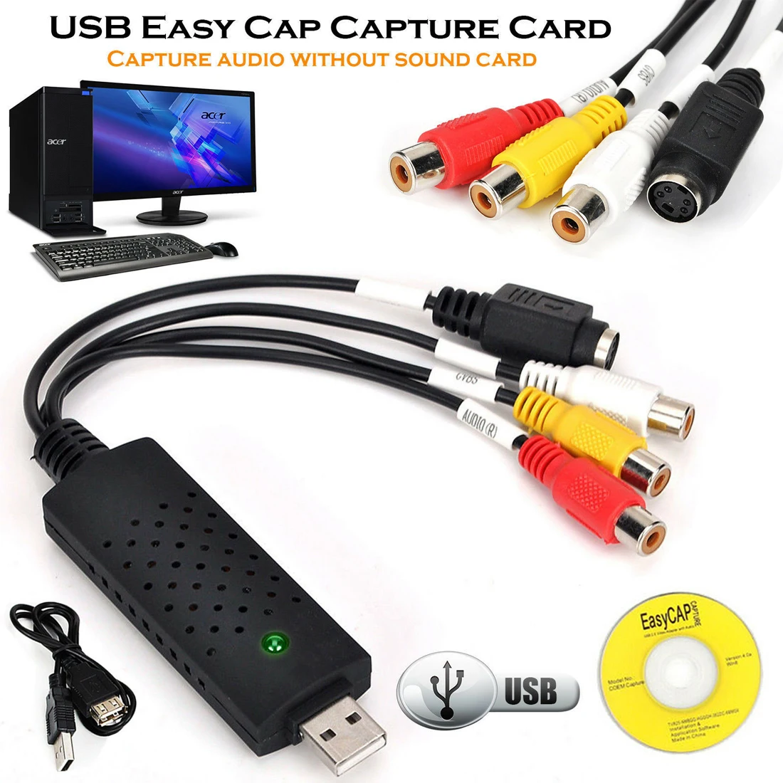 Подключение для записи вывода игровой консоли или видеоустройства. Включает в себя драйверы и программное обеспечение для записи источника на вашем компьютере/ноутбуке, так что у вас есть возможность сделать то, что вы хотите с ним. В комплект также входит Удлинительный кабель USB, чехол имеет дополнительную длину между исходным устройством и компьютером/ноутбуком.