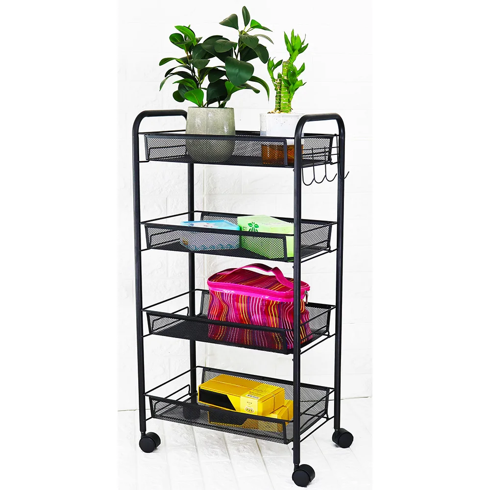 This 4-tier rolling cart with hook uses premium material with meticulous workmanship, features simple appearance, practicality and durability, meets your storage demand, helps to keep your items separated and organized, provides you a tidy home.