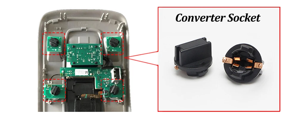 Посылка включает: Передняя Карта/купольный светильник (4 шт.) + (конвертерные розетки x 4) Задняя карта/купол (2 шт.) + (конвертерные розетки x 2) Туалетный зеркальный светильник (4 шт.) Светильник для перчаток (1 шт.) Багажник/грузовой светильник (2 шт.)