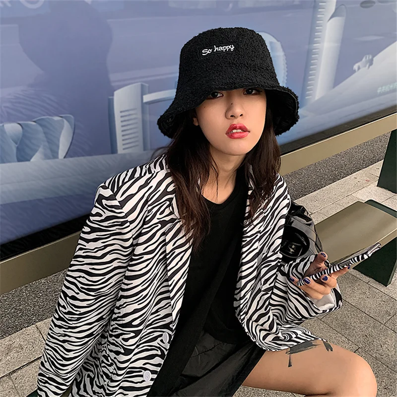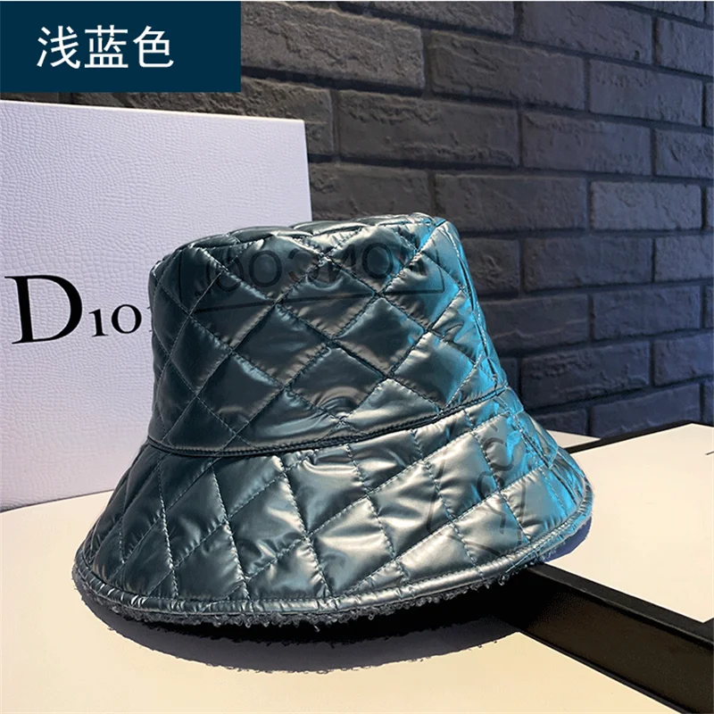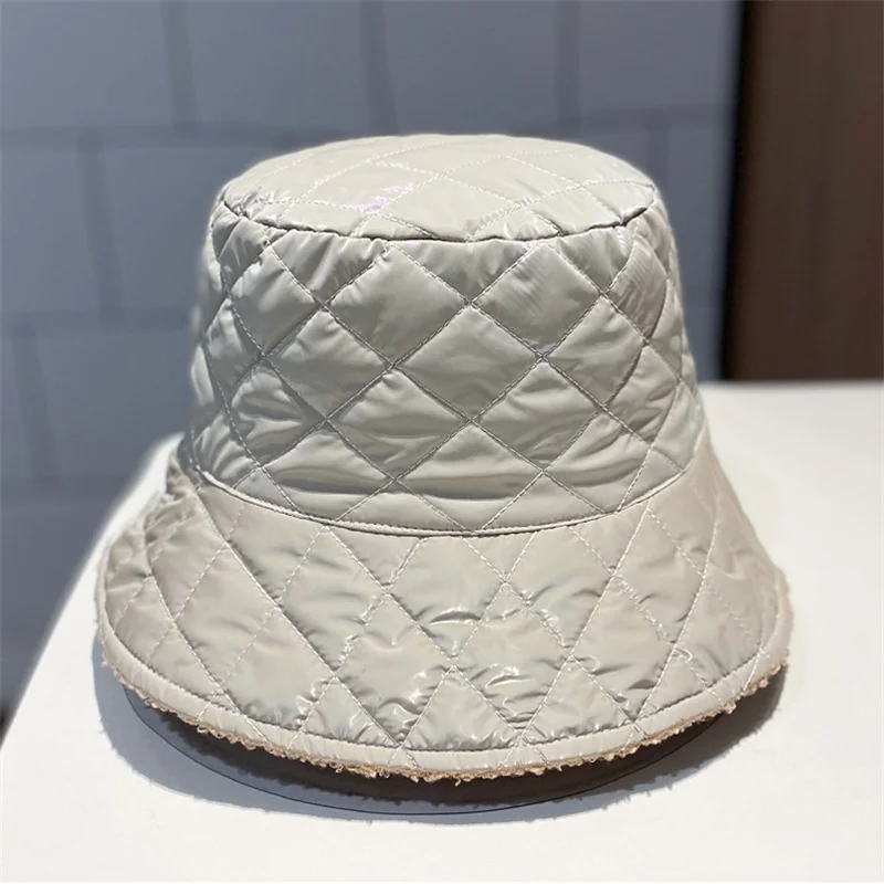 Харадзюку Двусторонняя Панама женская PU стеганая шапка Kpop Shearling Bob шапки осень-зима дизайнерская пуховая Панама шапки для рыбаков Кепка s