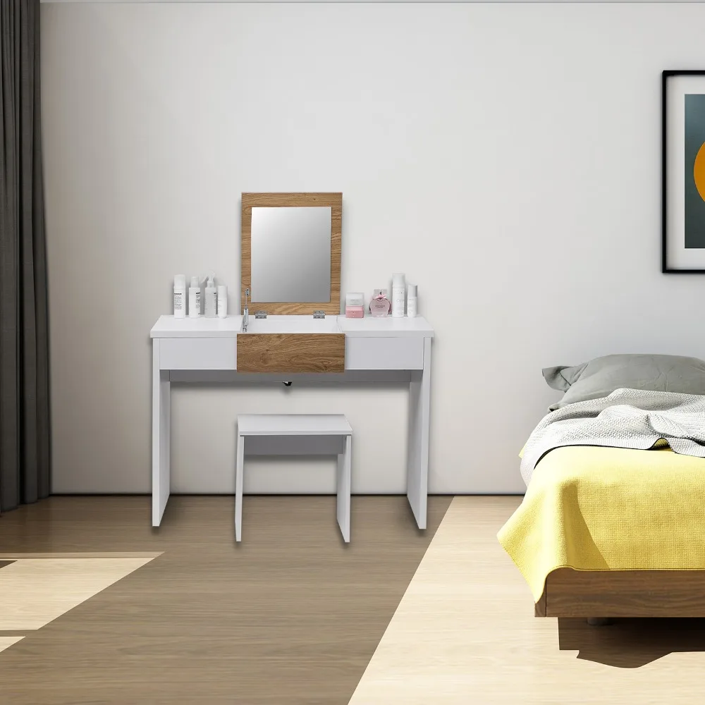 Туалетный столик из белого дуба со складным косметическое зеркало для макияжа туалетный столик для спальни комод набор с туалетным столиком