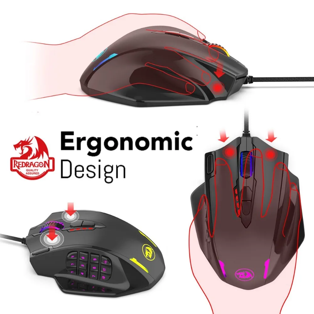 Комфорт и точность в ваших руках. Игровая мышь Redragon M908 является незаменимым компьютерным аксессуаром для геймеров с его агрессивным дизайном для рук! Вы будете поражены непревзойденным комфортом, летальной точностью и точностью убийца нашей прочной, настольной и портативной игровой мыши!