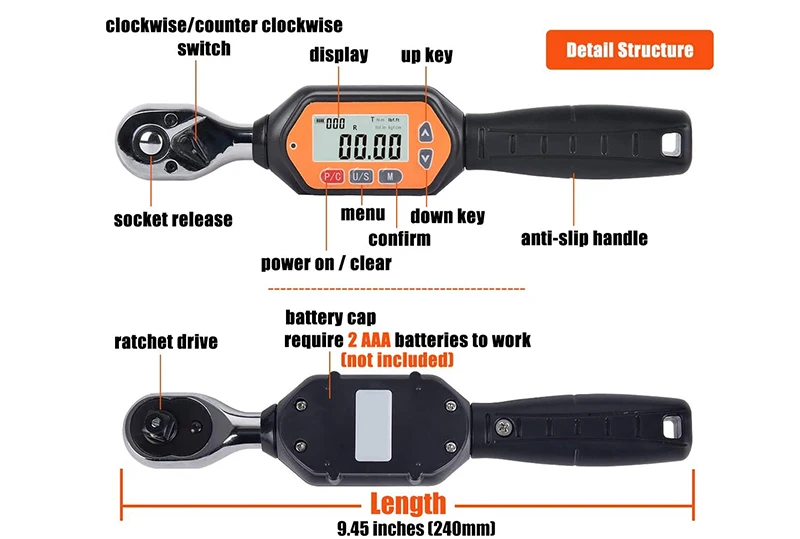 1. Большой экран, функция подсветки; 2. По часовой стрелке ± 2%, против часовой стрелки ± 2.5% точность (20 ~ 100% от полной шкалы); 3. Могут быть выполнены как по часовой стрелке, так и против часовой стрелки; 4. Звуковой сигнал и светодиодный индикатор запускаются при достижении предварительно определенного значения крутящего момента (режим пикового ограничения); 5. Четыре инженерных блока (N.m, kgf.cm, lbf.tf, lbf.in); 6. Режим измерения: три режима измерения: Режим реального времени, пиковый режим и заданный режим; 7. 999 групп записываемых значений могут храниться; 8. Автоматическое выключение в течение 5 минут.