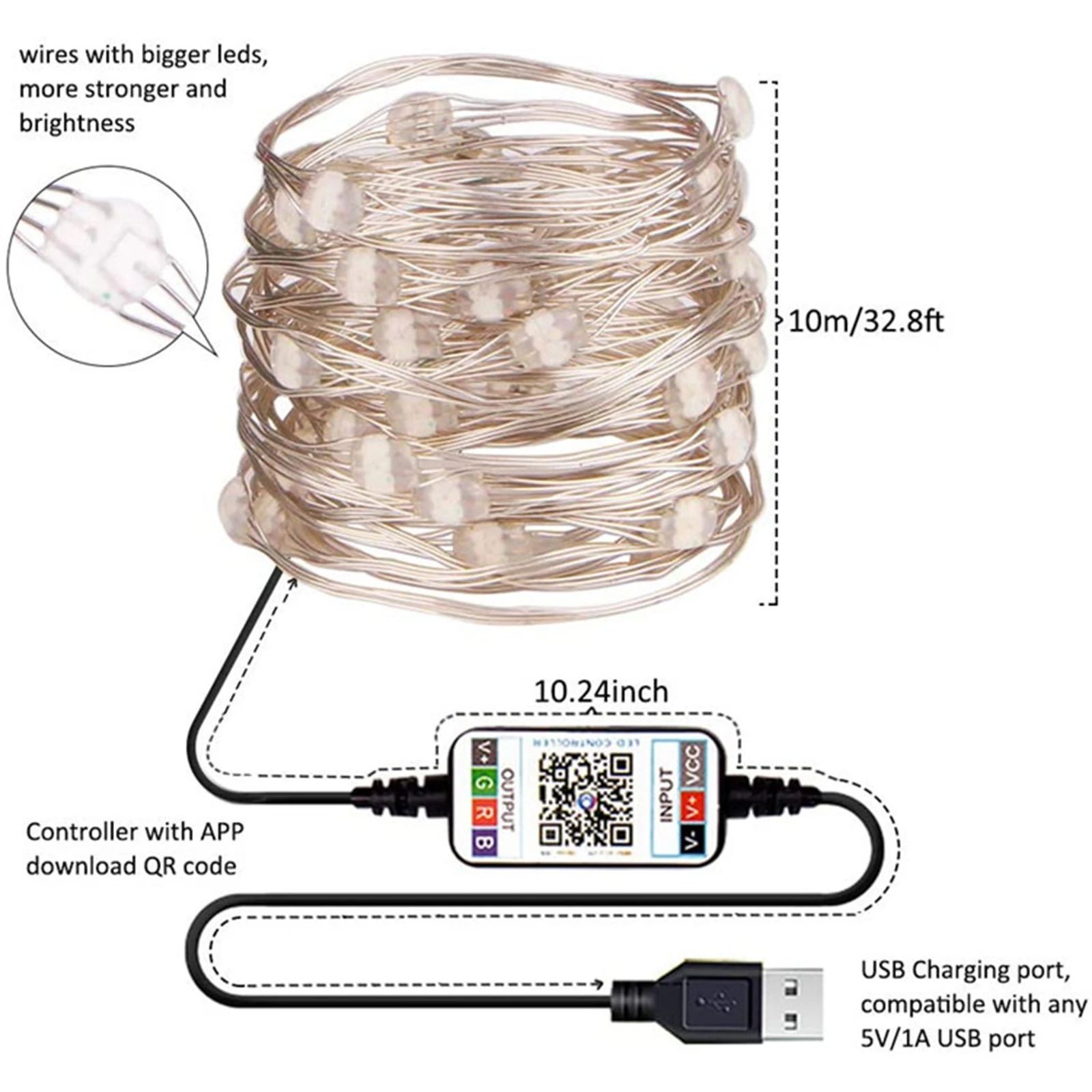 Размер: 2 м 20 светодиодов/5 м 50 светодиодов/10 м 100 светодиодов/20 м 200 светодиодов на выбор