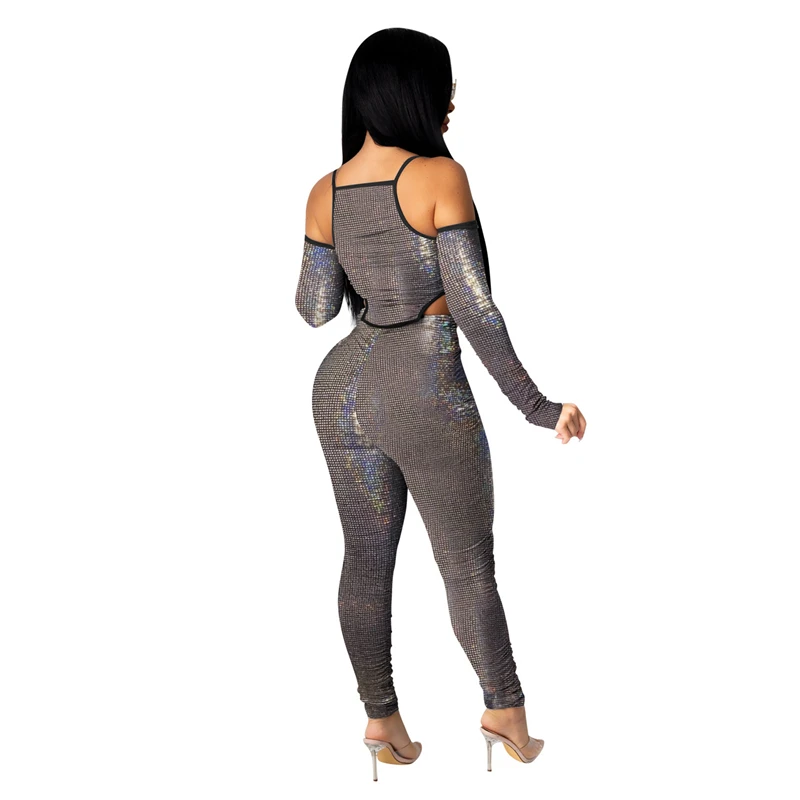 Женский Блестящий Комбинезон с глубоким v-образным вырезом и открытыми плечами Adogirl, Облегающий комбинезон с длинными рукавами, вечерние комбинезоны для ночного клуба