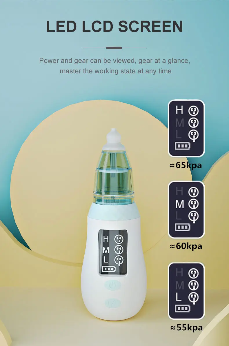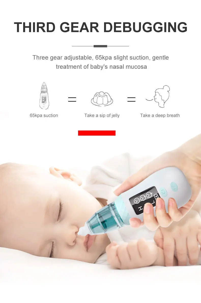 3. 3 уровня всасывания: Этот Модернизированный Электрический Очиститель носа поставляется с 3 регулируемыми уровнями всасывания, которые обладают сильной мощностью для всасывания слизи.