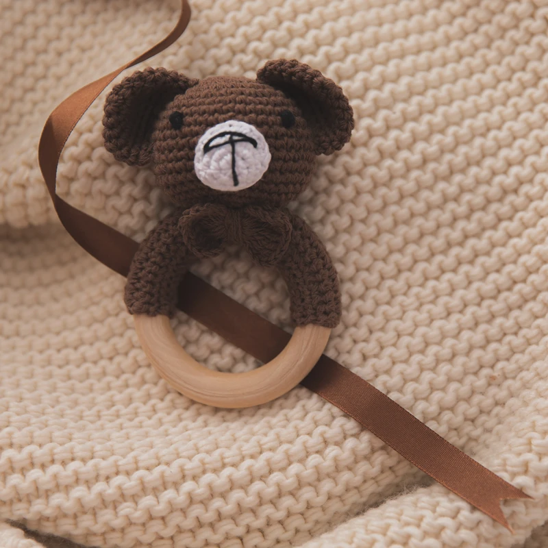 1PCS Newborn Baby Toys Wooden Teether Crochet Pattern Rattle Elephant Rattle Toy Newborn Amigurumi Teether Baby Rattles Gifts
