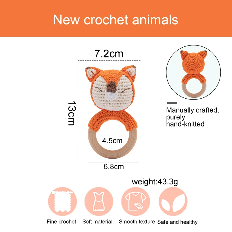 Product Name: Knitted Rattle Brand: Bite Bites Material Feature: Latex Free, Nitrosamine Free, Phthalate Free, BPA Free, PVC Free Function: Baby Toys,Newborn Baby ,Baby Rattles Packing: Single loaded Material: Wooden/ Crochet 、Knitted Rattle Shape: Cartoon / Animals Age Range: 4-6 months 7-9months Model Number: Baby Rattles / Baby Teethers Material:Food Grade Wooden Teethers Item: Amigurumi,toys baby Item1:Wooden Teether, Teether baby Item 2: Knitted Rattles,Pattern Rattle,Wooden Teether,,baby rattle Item 3:Newborn Amigurumi Teether Item 4:Knitted Rattles Gift 1. Handmade, every line is very clear. No matter which direction, it is very high quality. 2. There are bells in the animal's head to attract the baby's attention. Very suitable for the baby as a gift for toys. And the wiring port is very complete, do not worry about the line falling off. 3. Baby Shower Gift, Baby's Christmas gifts, New Year gifts, birthday gifts, you can choose this Montessori toy. It can be used as a tooth gel or as a toy.