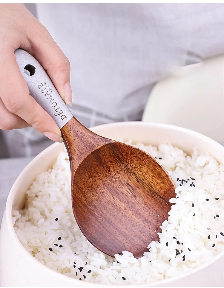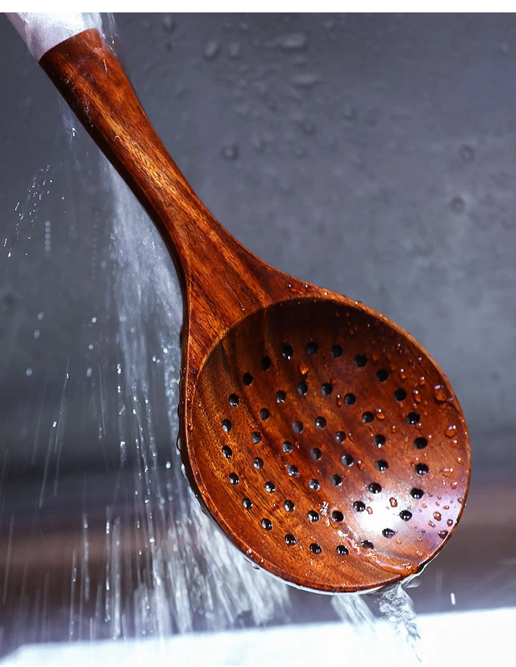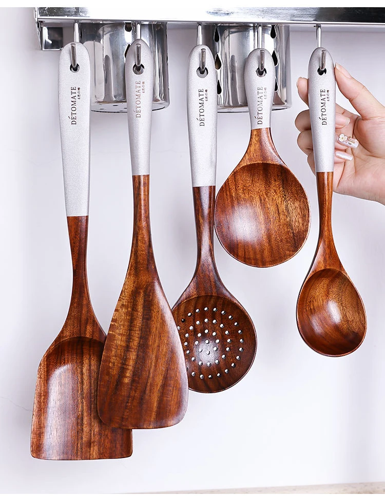 Наш деревянный набор кухонной утвари Leesin-100% ручная работа, натуральное тиковое дерево/палисандр, и часть ручки изготовлена из экологически чистой жемчужной краски, которая безопасна и non-toxic.When держать ручку, он будет чувствовать себя комфортно и гладко.