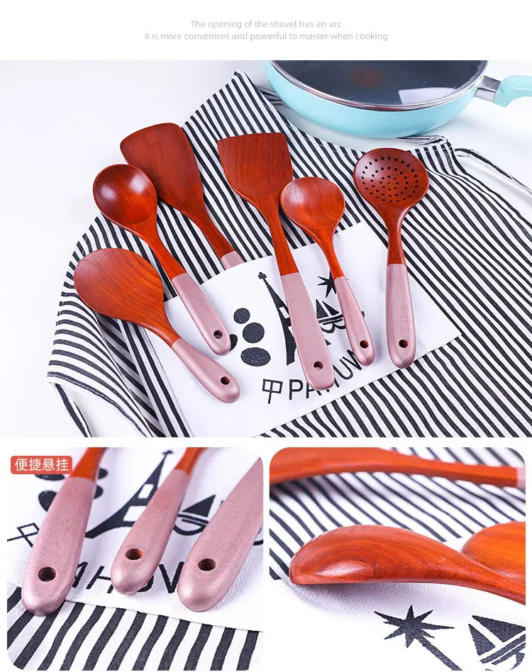 Название продукта: набор инструментов для приготовления пищи Материал: дерево, тик/палисандр Цвет: коричневый/красный Стиль: японский Размер: подробный размер товара показан ниже
