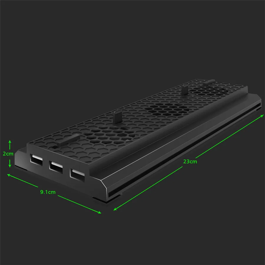 Vertical Stand with Cooling Fan for Xbox One X Game Console Specially Designed for Xbox One X console- Desined to protect the Xbox One console and being conveniet for 3 in 1 Functions - Xbox One X Vertical Stand & Cooling Fan & 3×2.0 USB HUB Charger Ports, increase the feel of the game experience. Powerfully & Quietly Cooling System- Built in 3-cooling fans to protect your Xbox One X console from over heating and after long hours of game playing, increasing your gaming time. Convenietly to Instally - Just place your Xbox One X on the cooler dock and connect the built-in cable. This USB cable powers everything, no need for additional cables, simple Setup. Modification of Details- With 4 NON-SLIP RUBBER PAD at the bottom plate, will stop any sliding and keeps your Xbox One X console in safe. Specifications: Compatible with Xbox One X Material: ABS Plastic(with Cooling Fans) Product dimension: 3.54 x 9.53 x 1.18 inches / 9.0 x 24.2 x 3.0 cm Package includes: 1 x Vertical Cooling Stand for Xbox One X Game Console 1 x Manual (Not included the Game Console)