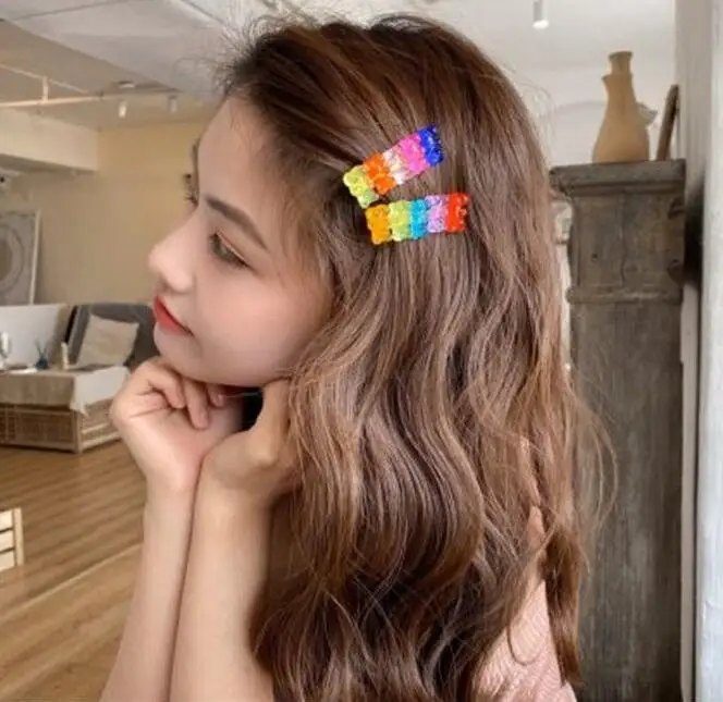Новый корейский стиль конфеты цвета желе медведь Форма смолы заколки для волос и милые носки с рисунками зверей из мультфильмов, заколка для волос для женщин и девочек 5,5 см