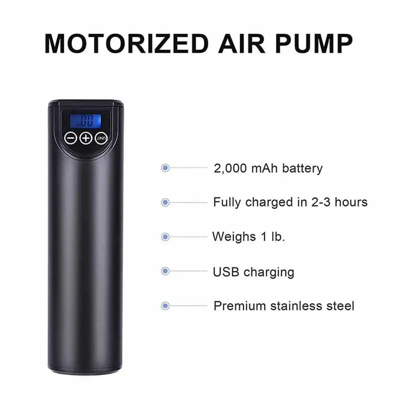 -Перезаряжаемая батарея большой емкости: благодаря сертифицированному литий-ионному аккумулятору 2000 мАч этот портативный компрессор готов надуть велосипеды, шары и т. д. зарядный порт USB поддерживает быструю зарядку.