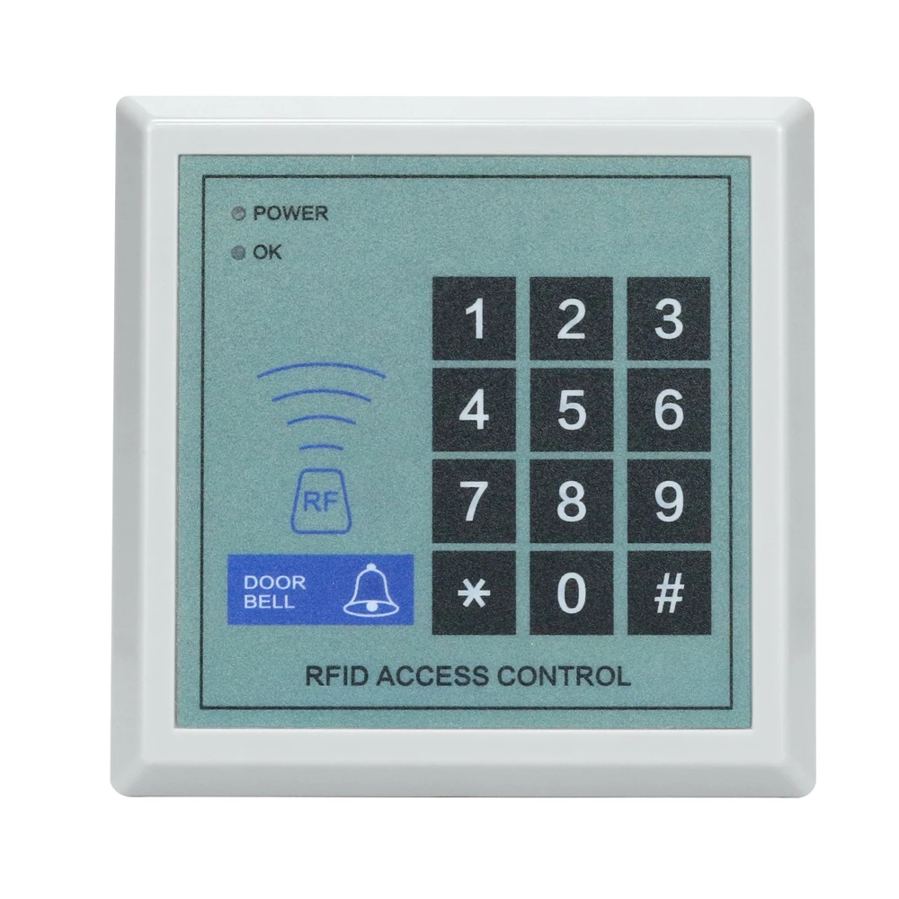 Ток разблокировки: 1000 мА Статический ток: 60 мА Память: 250 стандартных пользователей Расстояние считывания карт: 0-10 см RF Тип: EM карта Рабочая температура: -10 ~ 70 ℃ Диапазон влажности: от 10 до 90% Материал панели: жесткий пластик