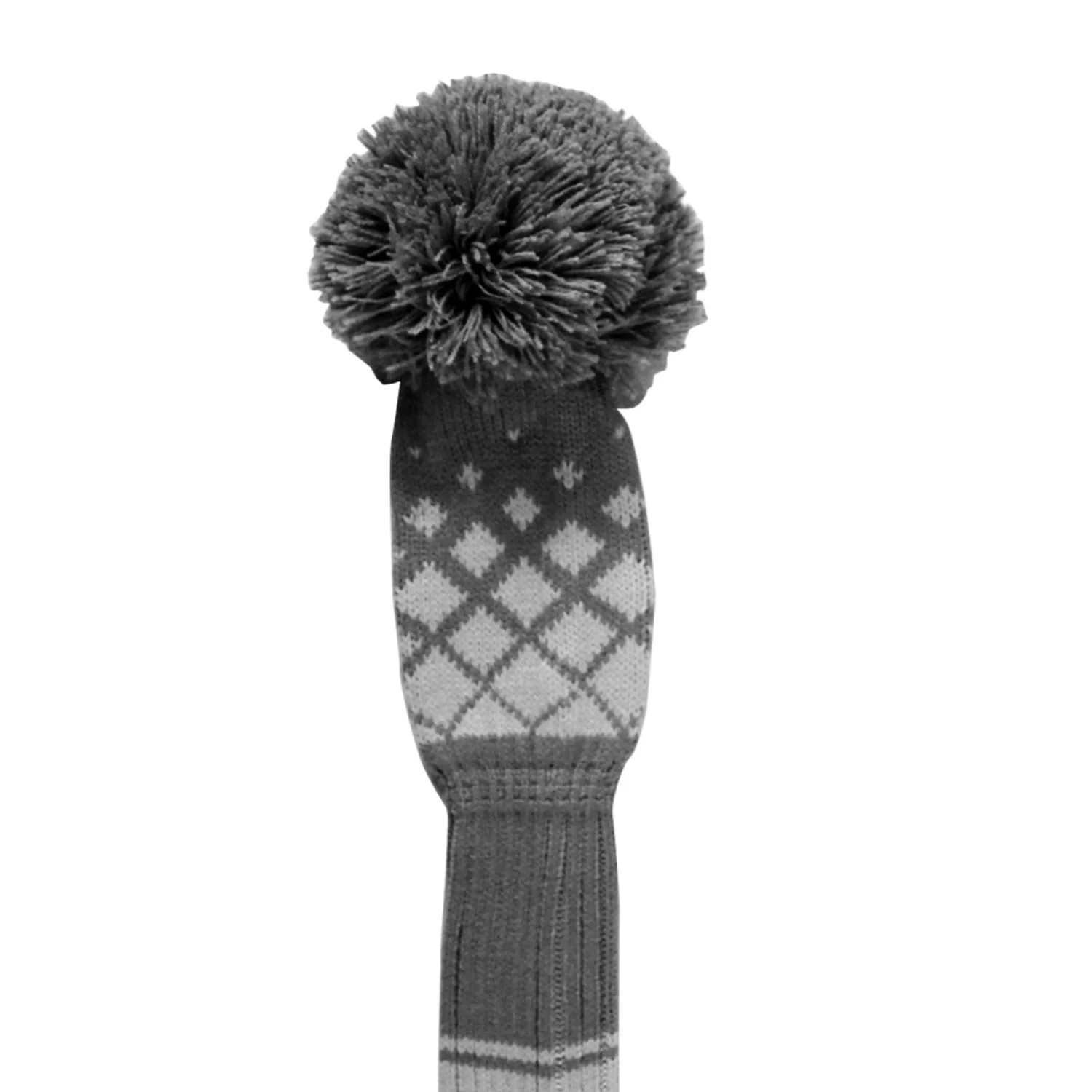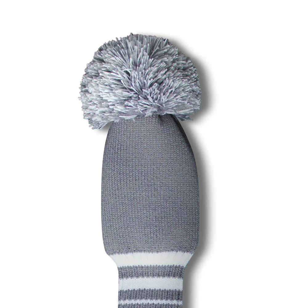 5. Серый белый полосатый помпон вязаный головной убор для гольфа