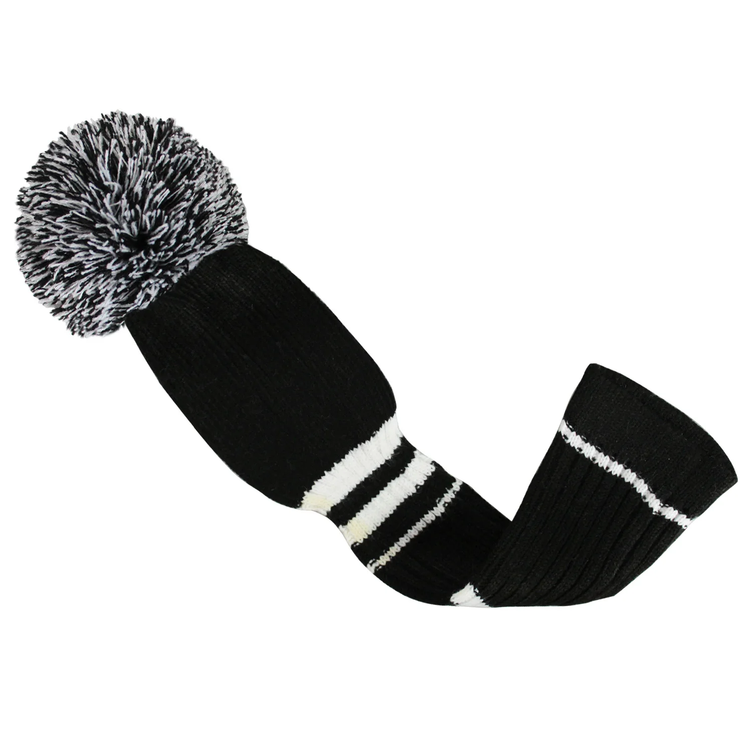 2. Черно-белый вязаный головной убор для гольфа с помпонами