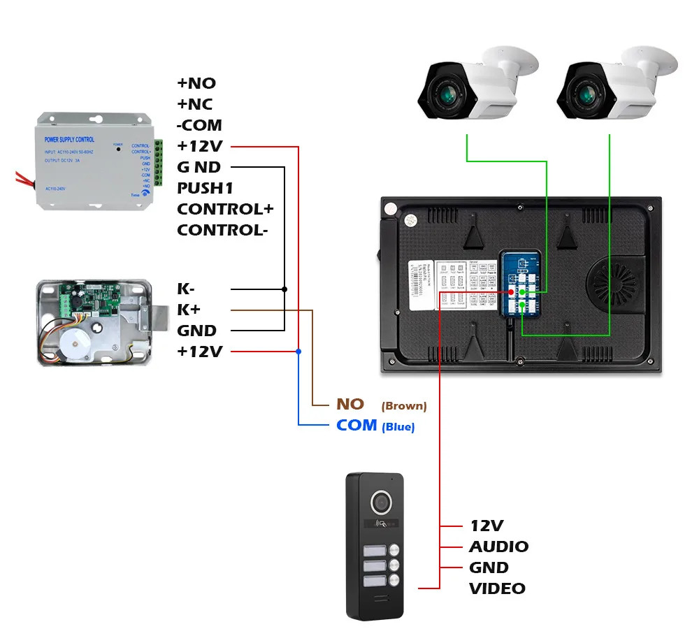 Каждый внутренний монитор может подключить еще один дверной звонок к двери своей комнаты. Вы также можете подключить камеру и инфракрасный датчик в коридоре и на балконе.