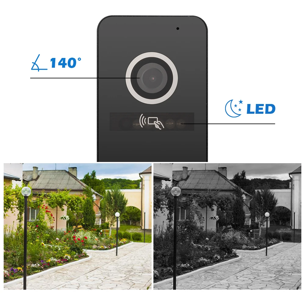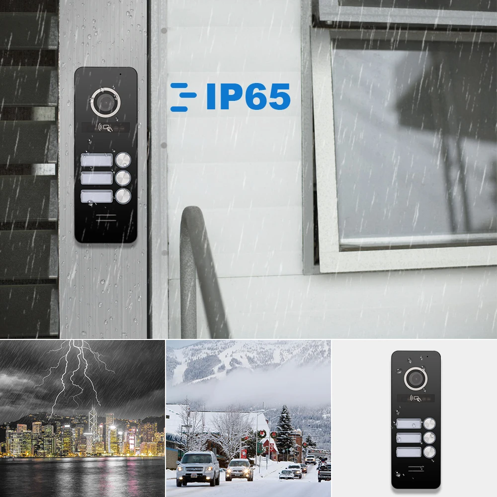 💟Двусторонний аудио-разговор 💟IC карта-ключ для разблокировки 💟Три независимых кнопки вызова 💟Четкая инструкция проводов на задней панели 💟Объектив высокой четкости # Широкий угол обзора 140 ° # Светодиоды ночного видения 120 °