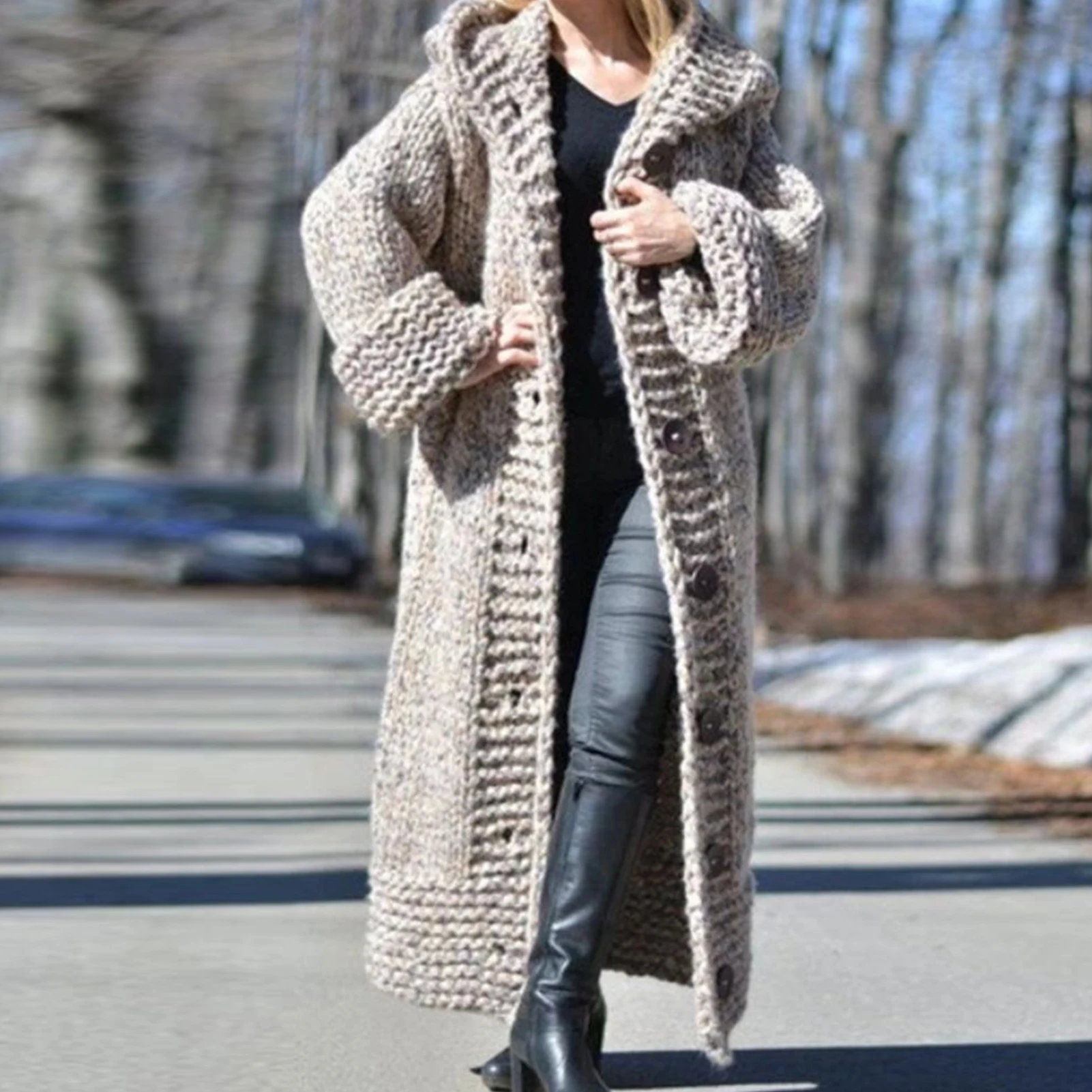 2020 женский зимний Кардиган с пуговицами, длинный рукав, с капюшоном, средней длины, вязаный свитер, пальто, женская одежда, женская одежда