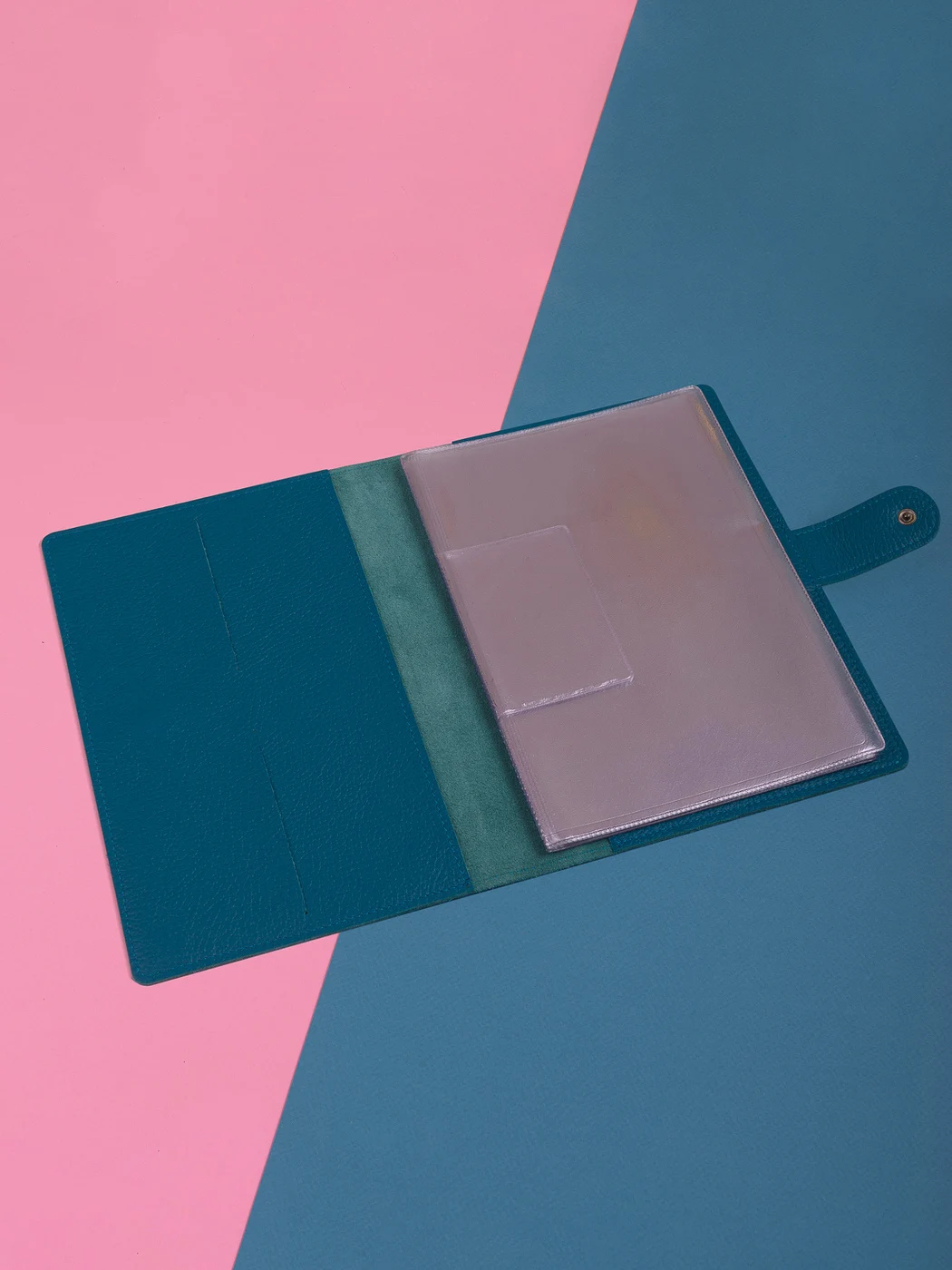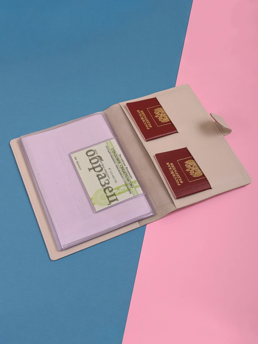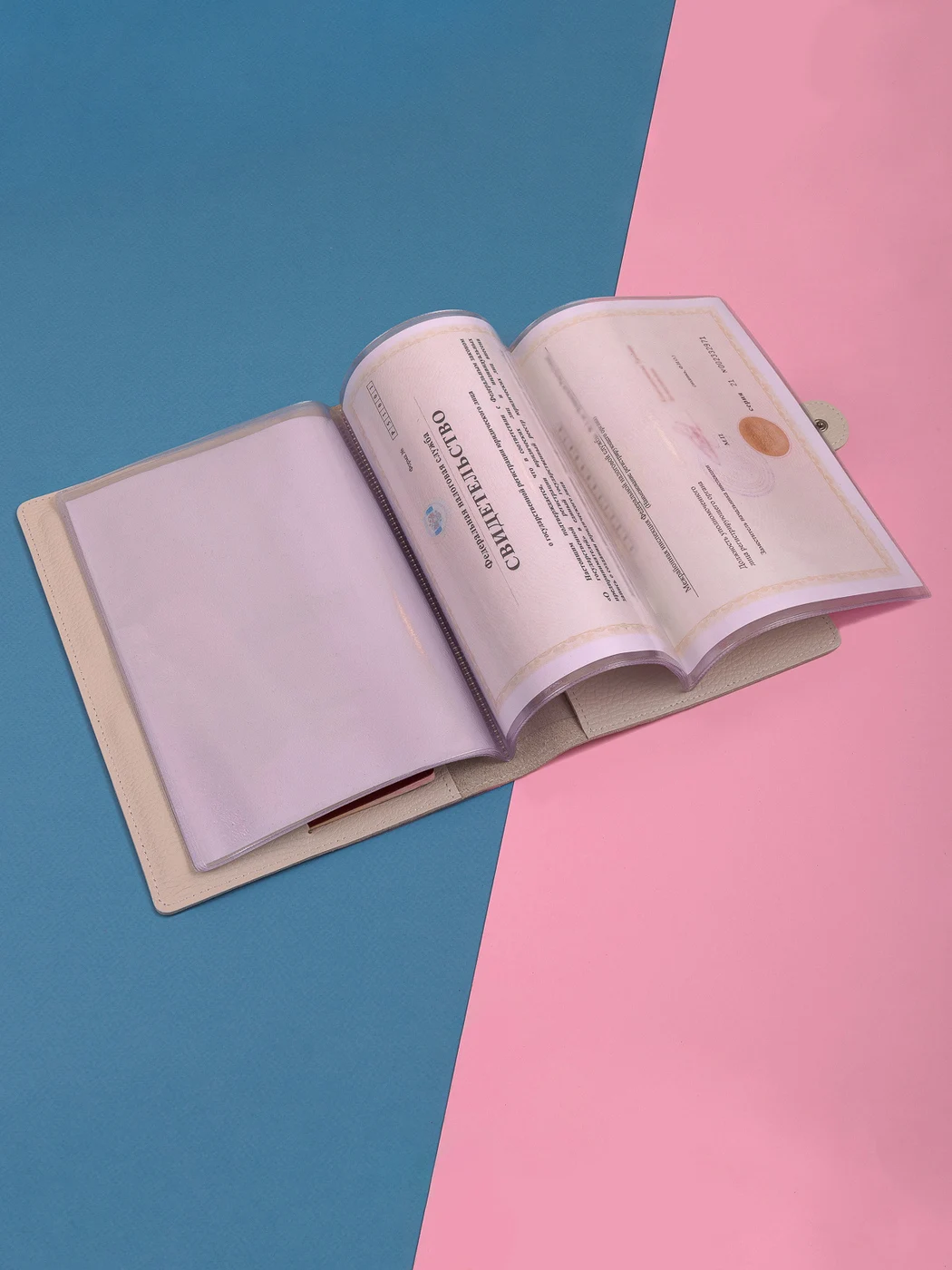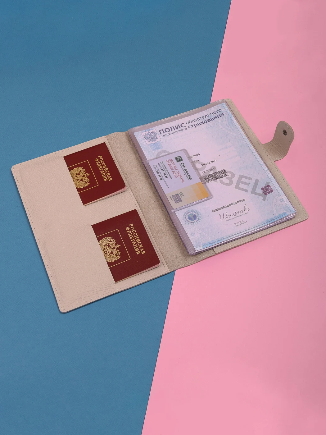 Папка со встроенным органайзером формата А5 для хранения и транспортировки документов. Закрывается на металлическую кнопку. Обложка сделана из натуральной кожи, высота - 23,5 см, ширина - 17 см. В органайзере 16 прозрачных кармашков разного формата (А5 - под страховое свидетельство) для всех видов основных документов. Документы А4 можно хранить в сложенном виде. В папку поместятся СНИЛС, полис ОМС, Свидетельство о рождении (Формата нового образца А4 ), Свидетельство о браке ( нового образца А4). Кармашков достаточно для полного комплекта документов на семью из 4 человек, а также имеются 4 отделения для паспортов.