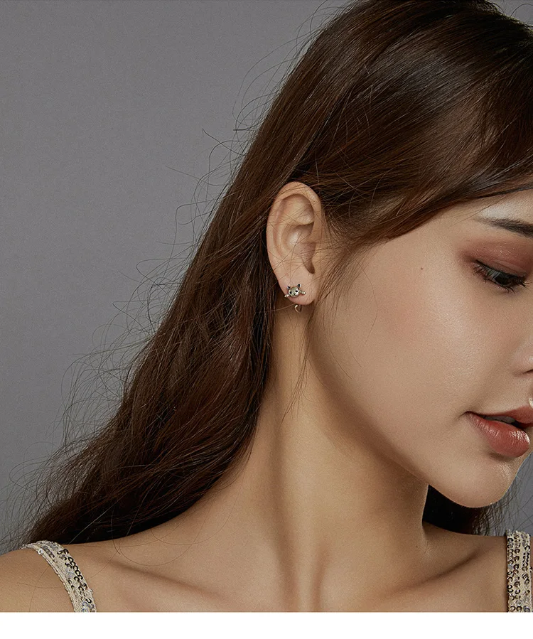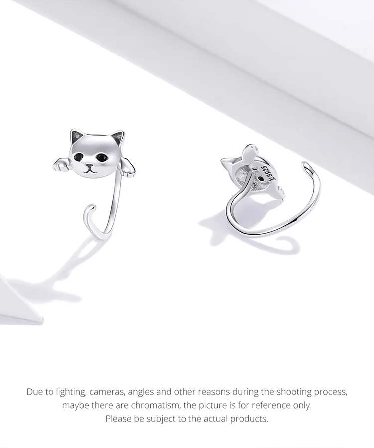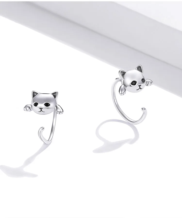 Женские серьги-гвоздики WOSTU, из настоящего серебра 925 пробы с милым котом, в подарок