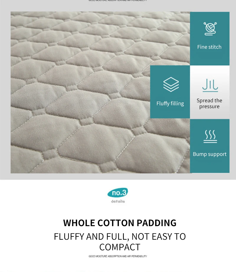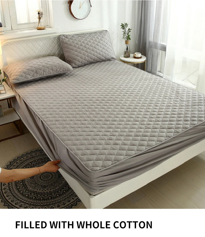 Крышка кровати подходит для толщины 3-30 см, материал 100% хлопок, без мяча, без ворса и эластичная лента на 360 ° надежно фиксируется. Мягкие и удобные, влагопоглощающие и дышащие. Его можно мыть водой или машиной, без деформации или выцветания.