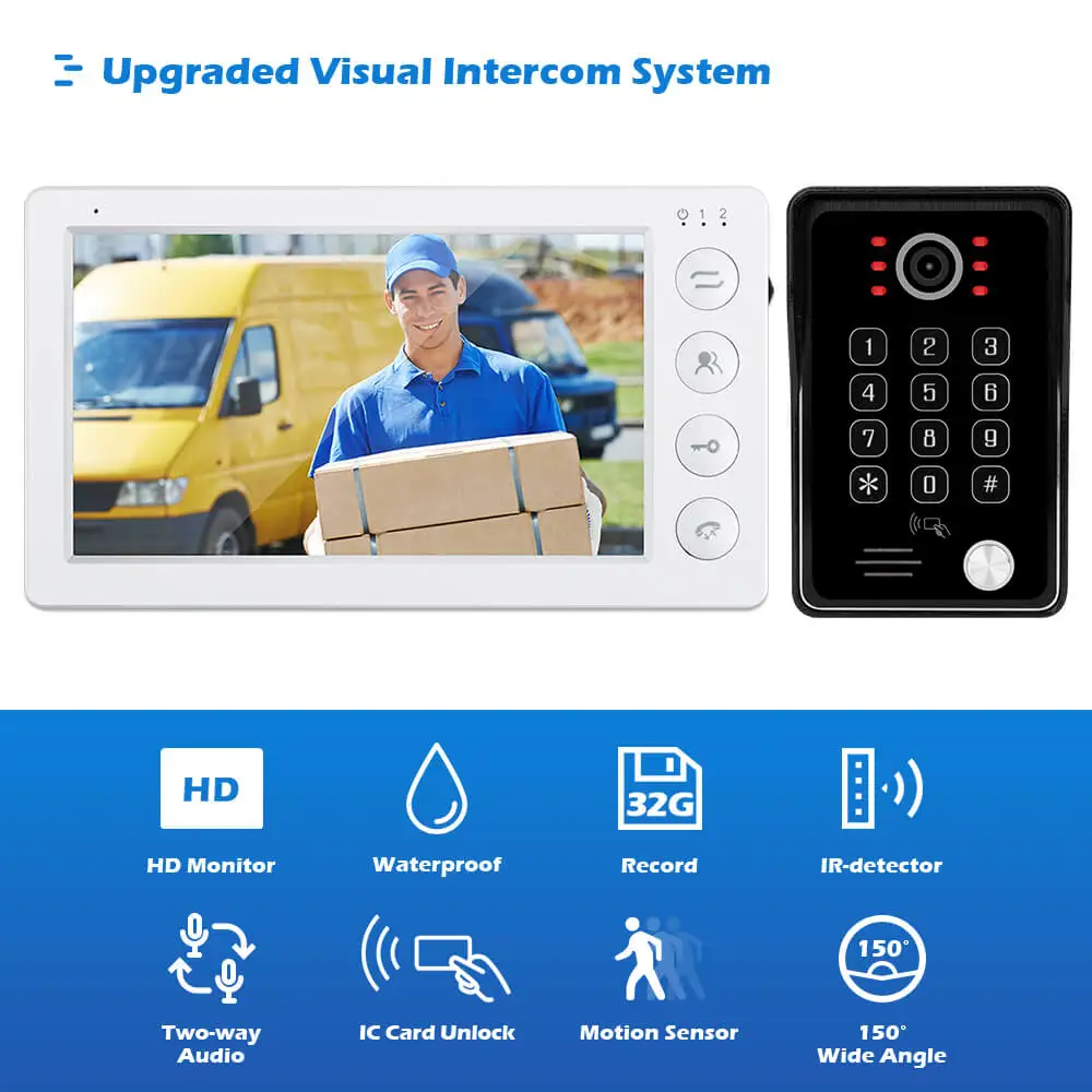 🔊Когда посетители нажимают на панель «звонок», монитор звонит. 📞Затем вы можете нажать кнопку «говорящий», чтобы поговорить с посетителем. Кроме того, монитор может передавать вызов на другой монитор, если вы устанавливаете более одного монитора. 🔑И нажмите кнопку «разблокировать», если вы хотите, чтобы посетитель входил в ваш дом.
