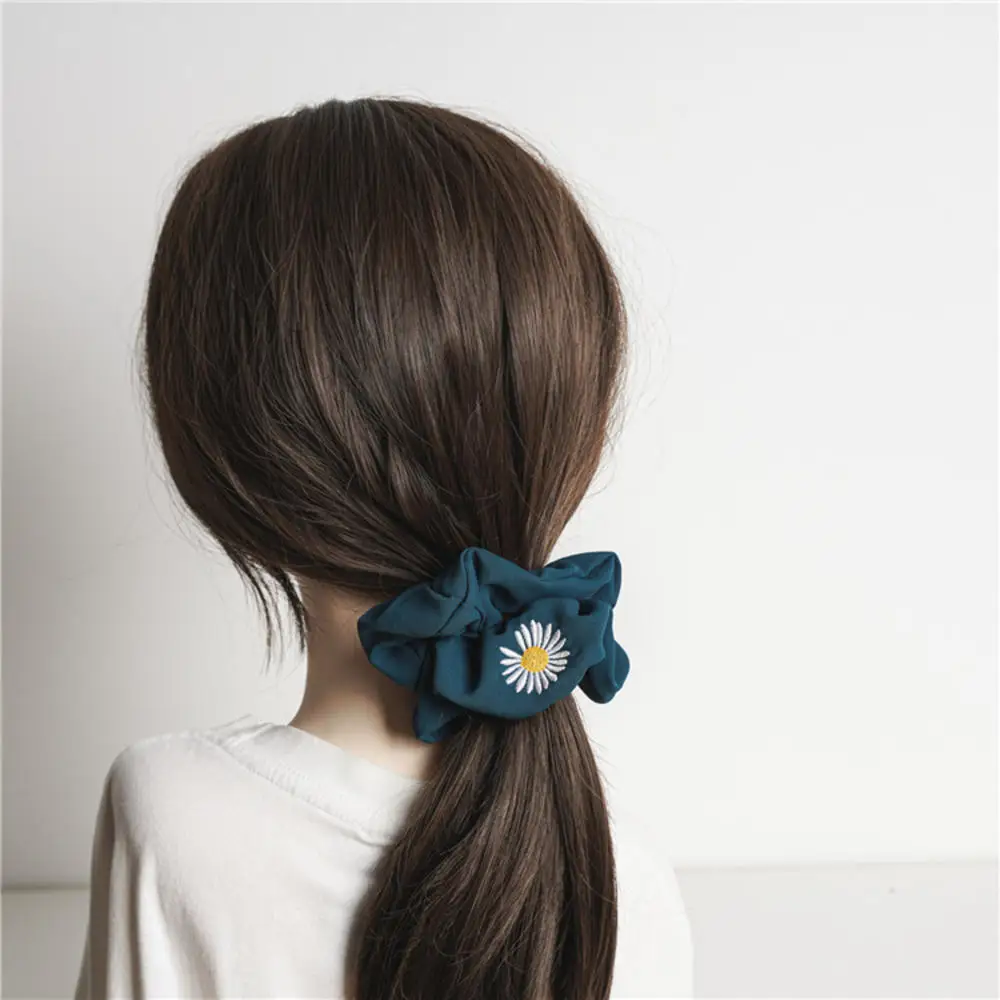 Женские резинки для волос, милые эластичные резинки для волос с маргаритками, шифоновые ободки с цветочной вышивкой, бархатные аксессуары для волос