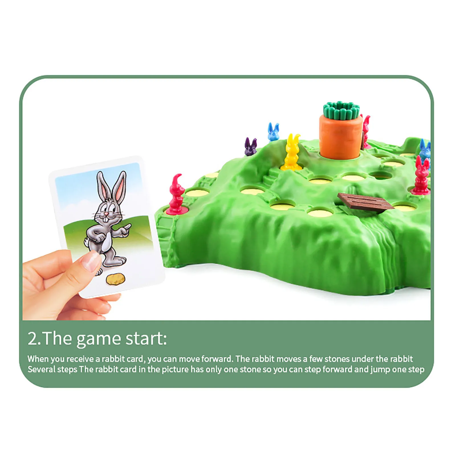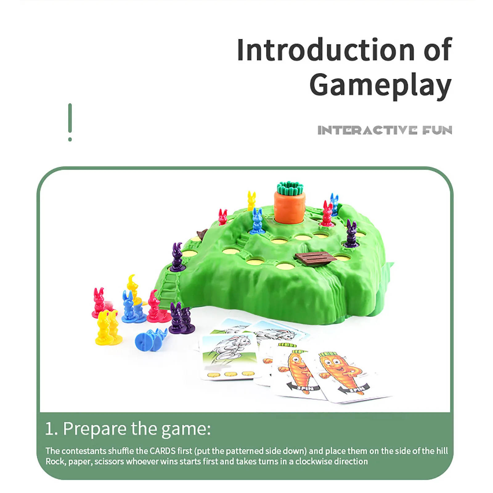 1. Переверните игровую карту, Если вы обнаружите, что это репа, поверните контроллер в середине игры Сидение; Играя сердцебиение, будут отверстия в процессе поворота, Осторожно! Если вы обнаружите, что это Кролик, вы должны увидеть, есть ли какие-то камни под кроликом. Это камень, а затем прыгать Кролик вашего собственного цвета в отверстие; Если это два камня, вы Может перемещать кролика на два пространства, Это три камня Перемещайте три круглых отверстия; Это то, как вы играете, И посмотрите, кто кролик подходит к середине большой редиски, чтобы выиграть!Описание: