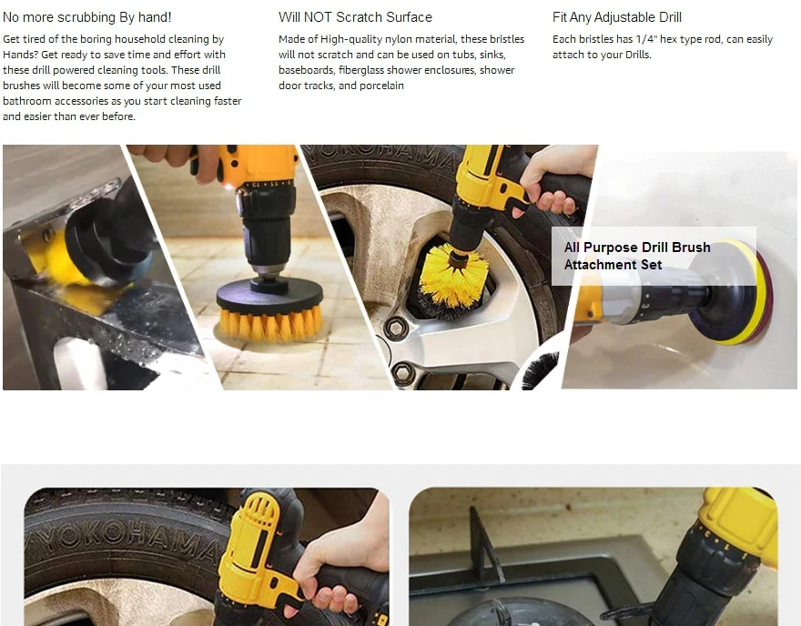 Желто-желтая электрическая дрель имеет среднюю твердость и подходит для большинства предметов. В основном все предметы могут быть очищены желтой электрической буровой щеткой