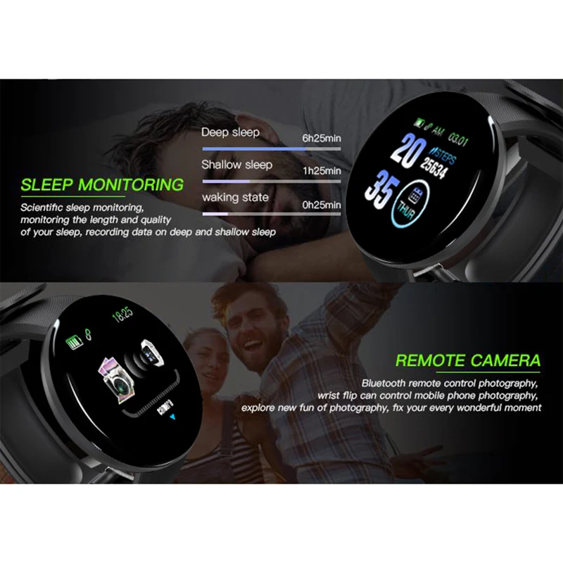 Функции: мониторинг здоровья, информационное нажатие, интеллектуальное напоминание, анализ сна, подсчет шагов, удаленный автотаймер, мониторинг сердечного ритма и т. д.