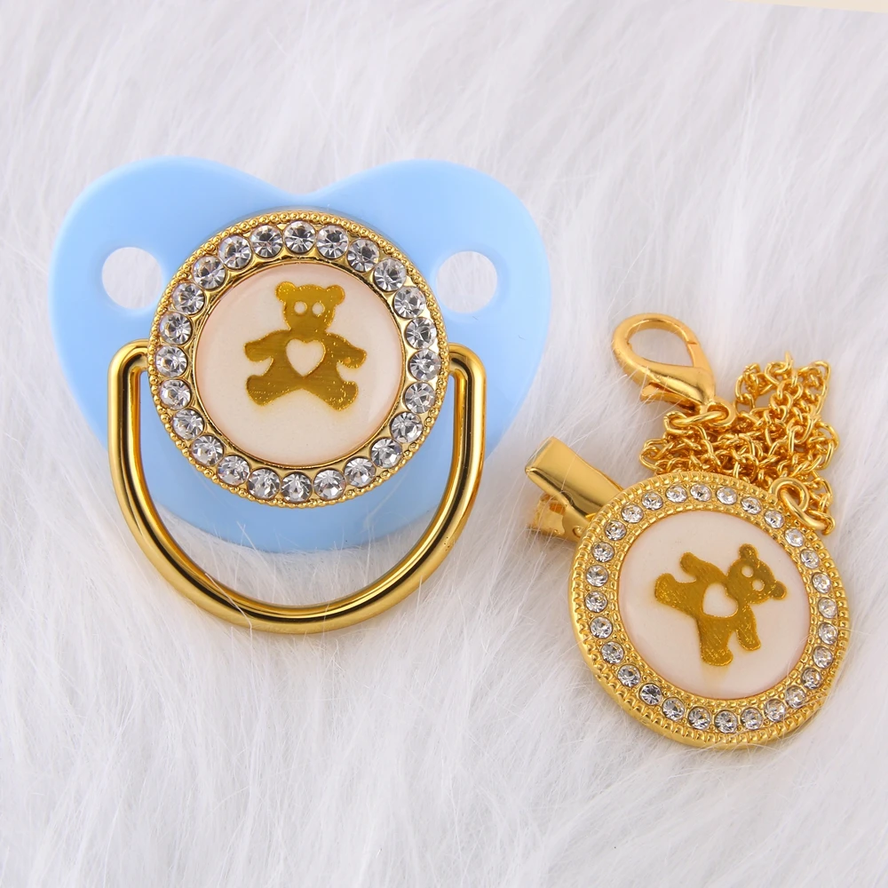 0-18 месяцев; Шикарные роскошные стразы детская пустышка на цепочке с прищепкой, куртка с изображением милого медведя младенческие Силиконовые Зубные кольца; Ортодонтическая пустышка соска сна пустышки для младенцев
