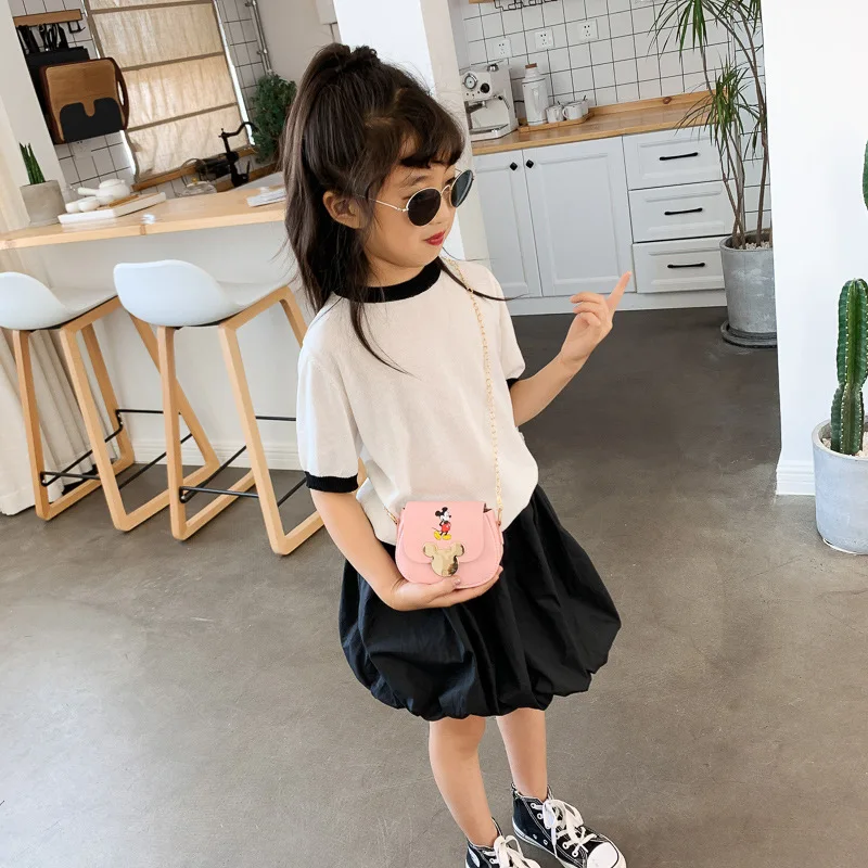 Детская сумка на плечо из искусственной кожи с изображением Микки и Минни Мауса Disney, новинка 2021, модная сумка на цепочке с изображением Микки Мауса, сумка для девочек, детское портмоне