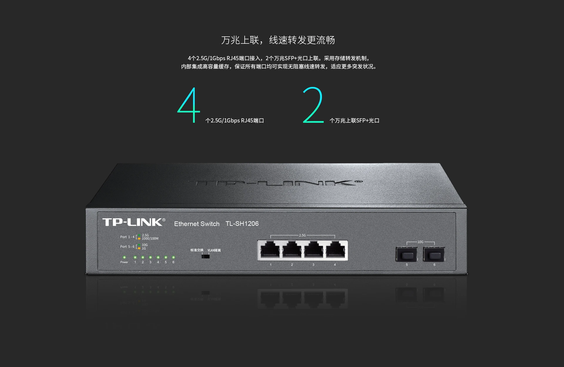TL-SH1206-это 10-гигабитный Ethernet-коммутатор, независимо Разработанный TP-LINK. Он обеспечивает 4 2,5 г/1 Гбит/с RJ45 портов и 2 10-Gigabit для программирования в производственных условиях + оптическими портами, а также поддерживает два режима работы Стандартный импульсный источник и VLAN изоляции.
