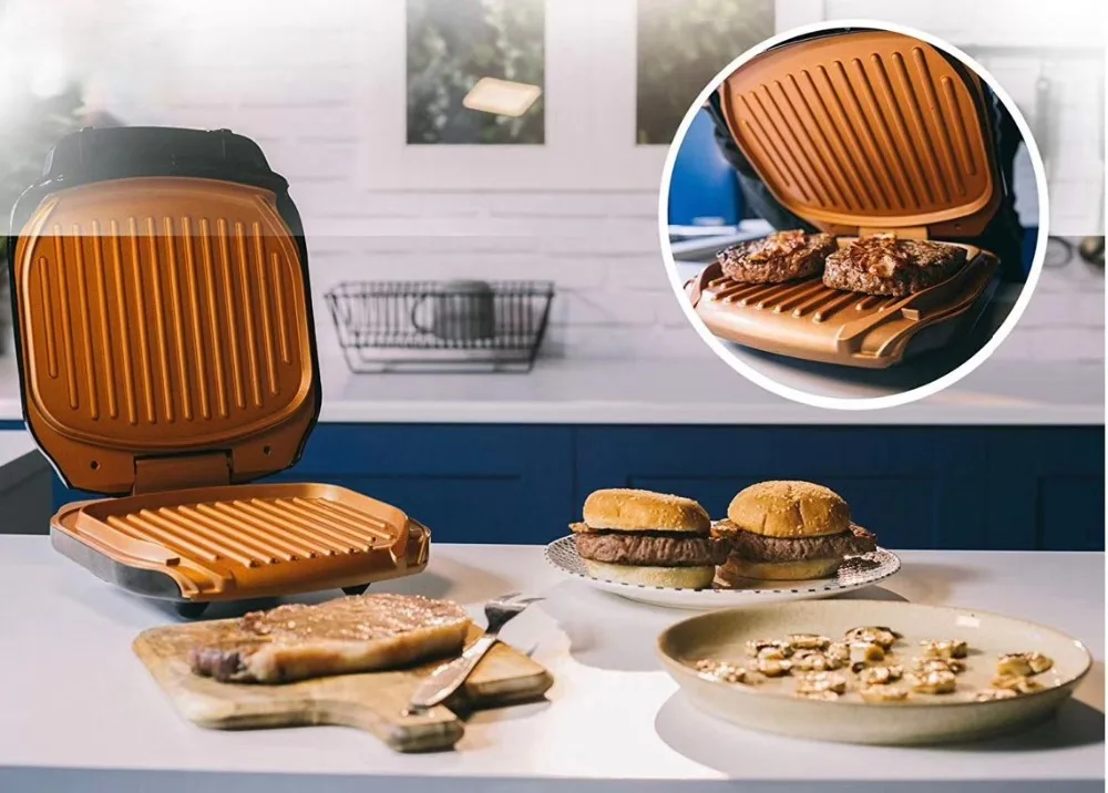 С электрическим грилем, жир капнет из тарелок в контейнер ниже для здорового приготовления пищи. Готовьте все свои любимые продукты, включая гамбургеры, стейки, сэндвичи, овощи, морепродукты и многое другое.